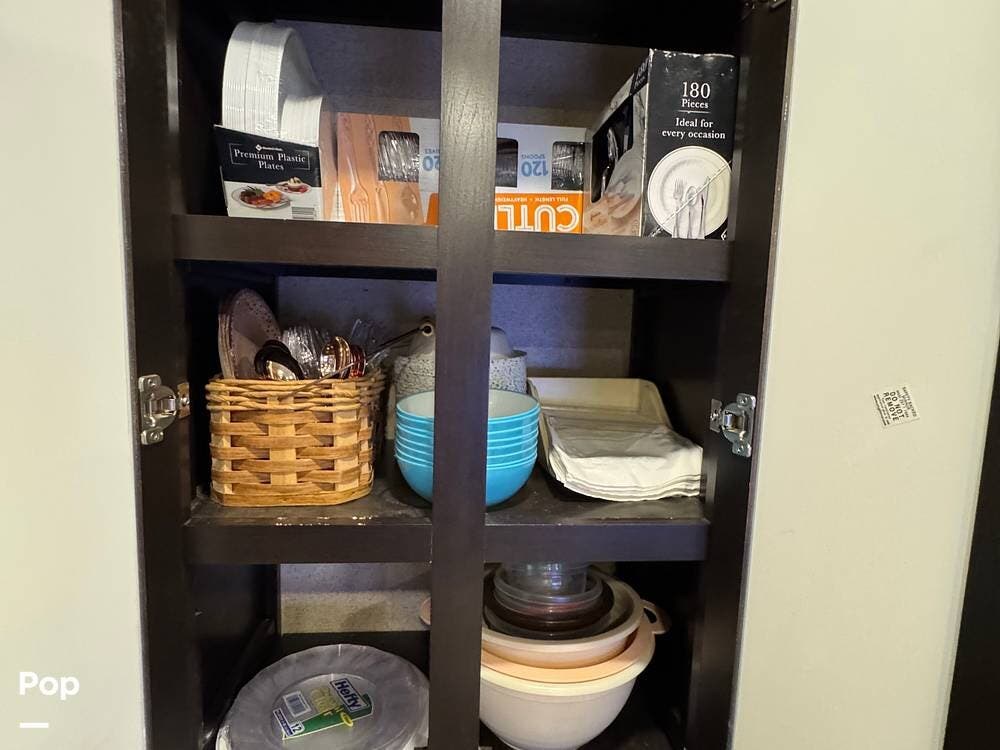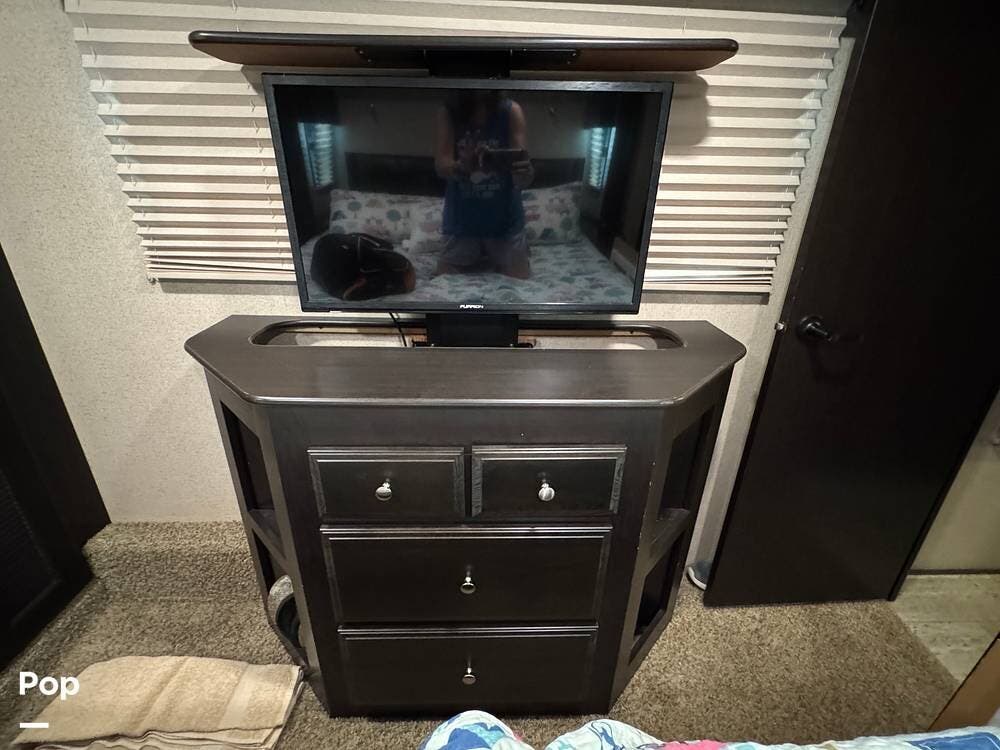 King-sized bed with memory foam, 39" Furrion TV in the bedroom, washer/dryer prep in master bedroom closet, a fireplace with blower and remote in the living room!