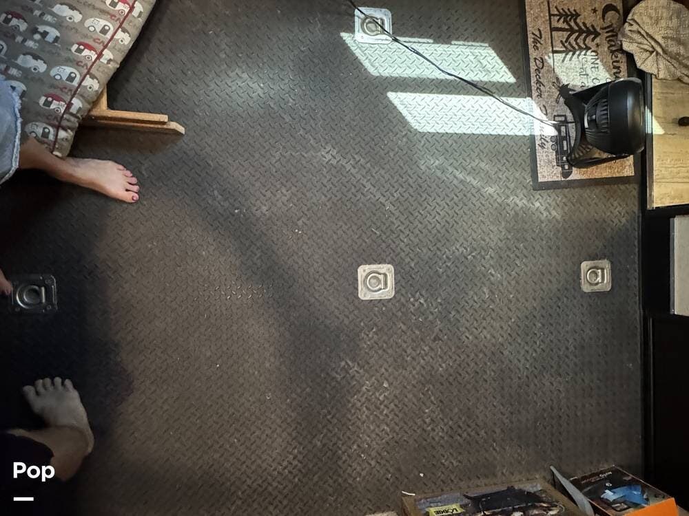 It has a 5,100-pound toy capacity in the 12-foot garage! The loading floor is rubber with 2,500 lb tie-down d rings.