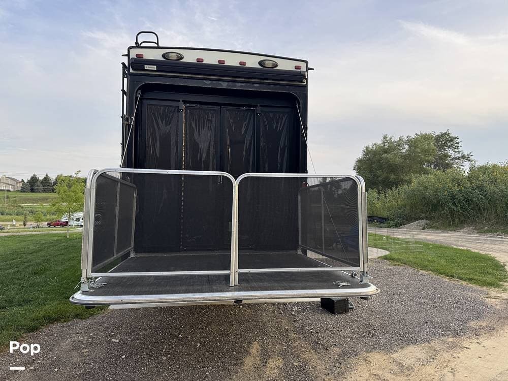 Everything from three AC units, a low-hour generator, a fueling station, a leveling jack system, a large rear opening with a ramp that converts to a party patio with a railing and awning!
