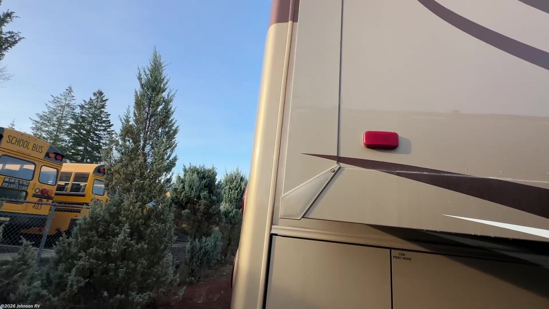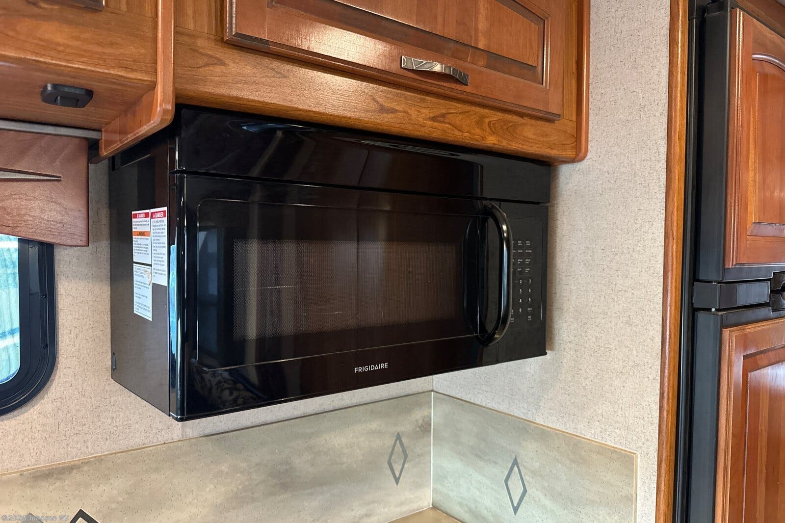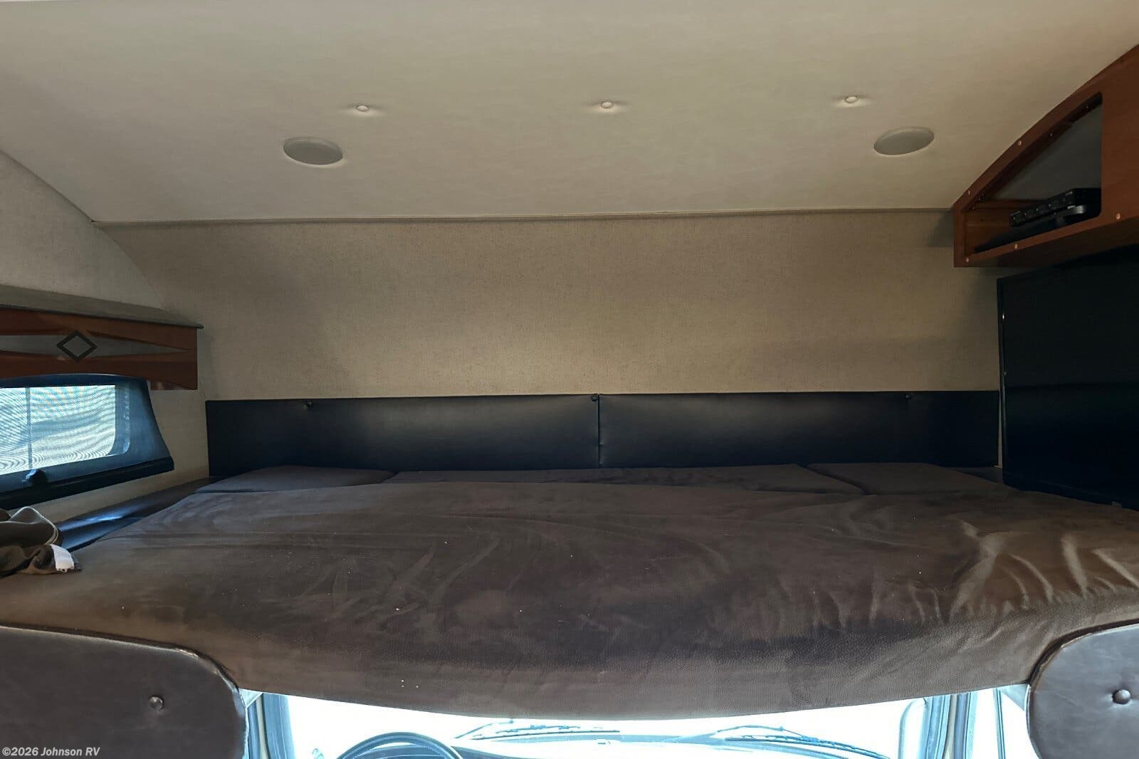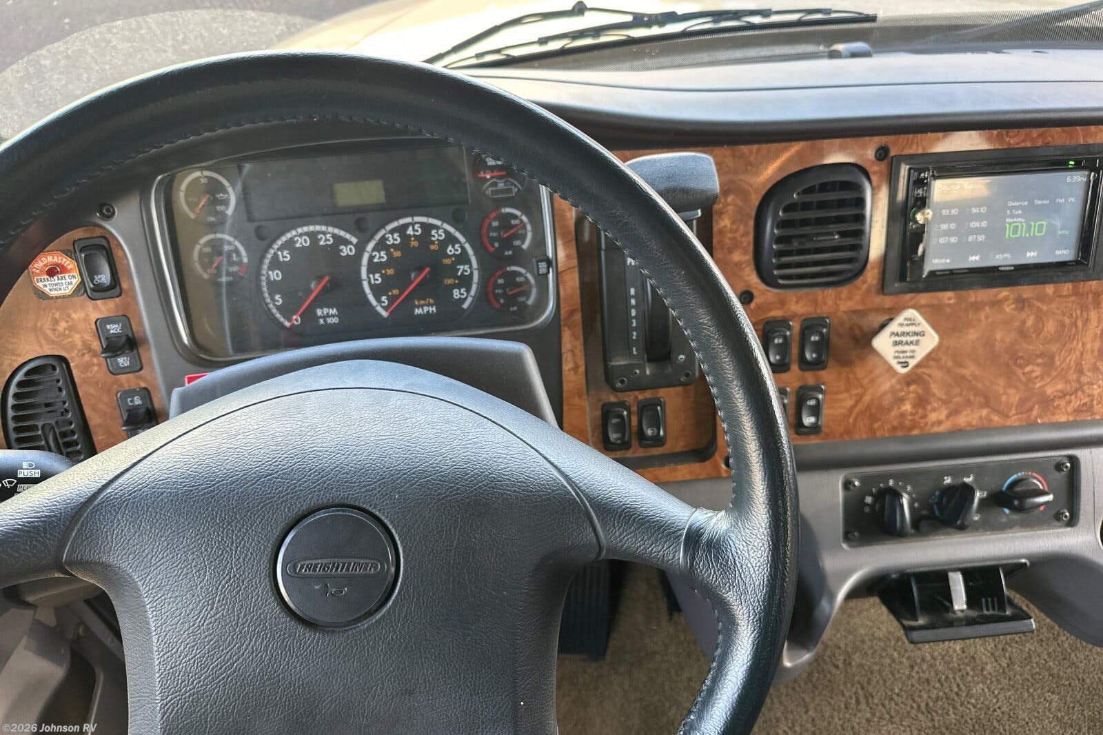 The 2016 Jayco Seneca 37FS is a robust Super C motorhome that blends residential luxury with the durability of a Freightliner M2 chassis. Powered by a 6.7L Cummins ISB diesel engine delivering 340 horsepower and 660 lb-ft of torque, this RV is built for long-haul comfort and towing confidence, with a 10,000-pound hitch rating and a 74-gallon fuel tank. Measuring 38.8 feet in length, the 37FS features two slide-outs that expand the living space, accommodating up to 10 people. The floorplan includes a rear king bed, a set of bunk beds, a cab-over queen bed, a hide-a-bed sofa, and a convertible dinette. The mid-coach bathroom offers a corner shower, porcelain toilet, and ample storage. The kitchen is equipped with a full-size 12 cu. ft. refrigerator with ice maker, convection microwave, two-burner cooktop, and solid-surface countertops. Entertainment options include three TVs (including an exterior entertainment center), surround sound, and a touch-screen infotainment system with GPS.