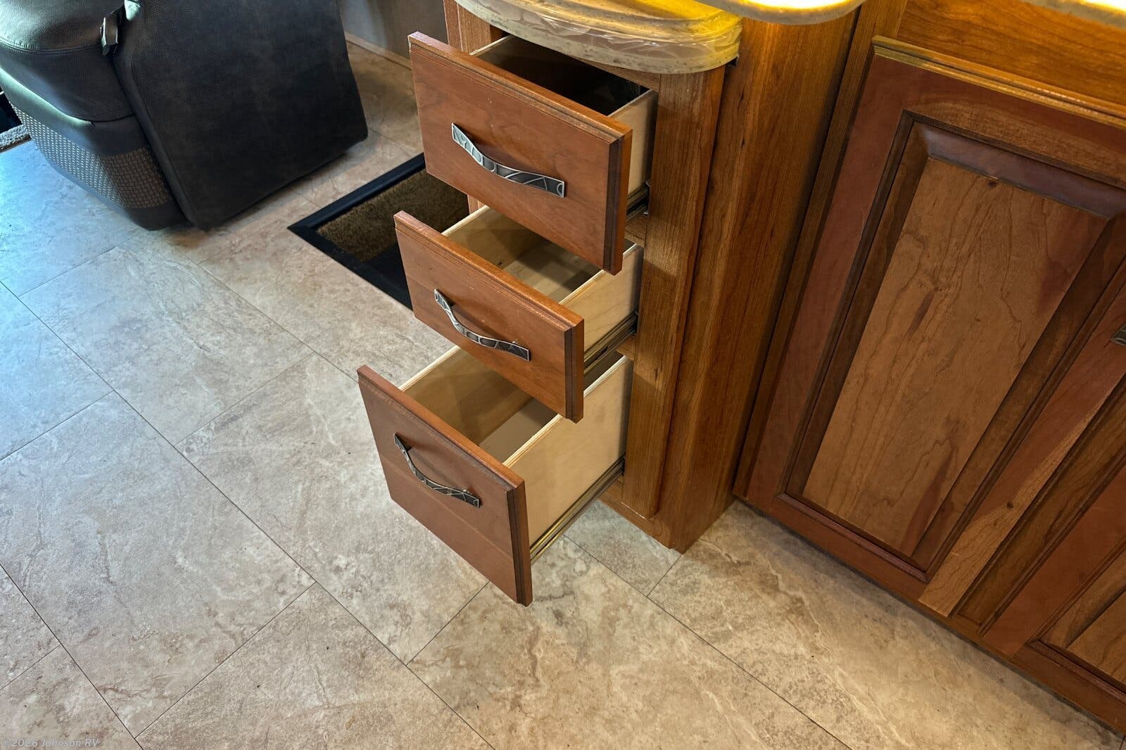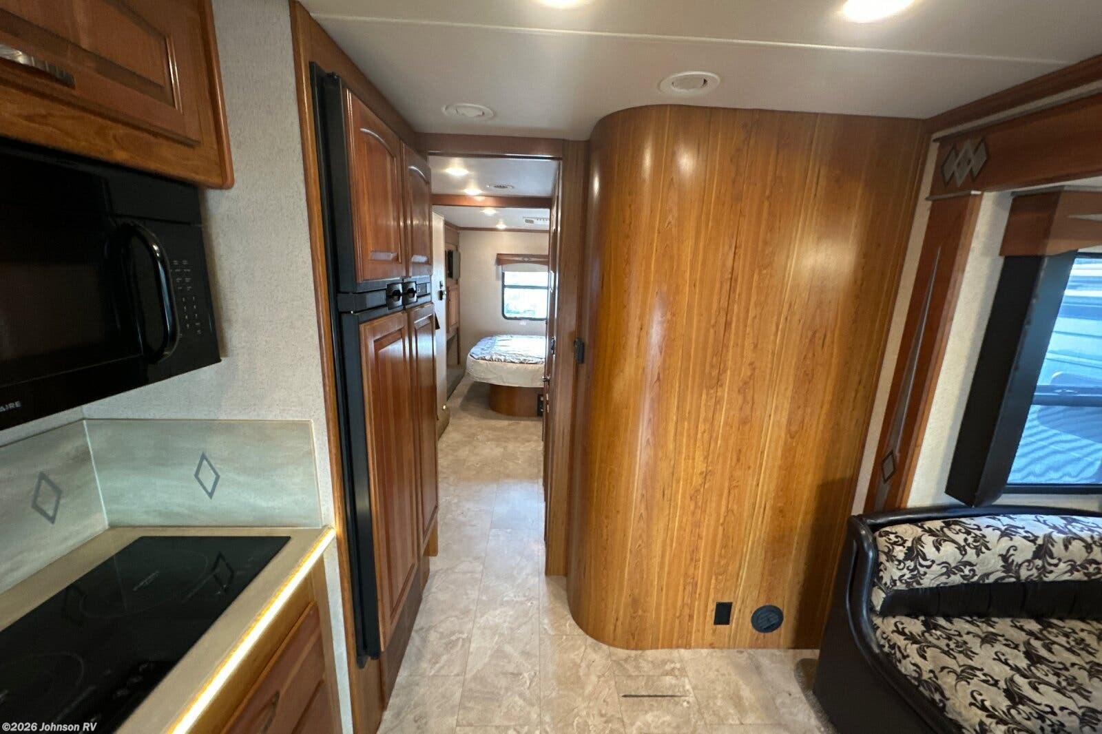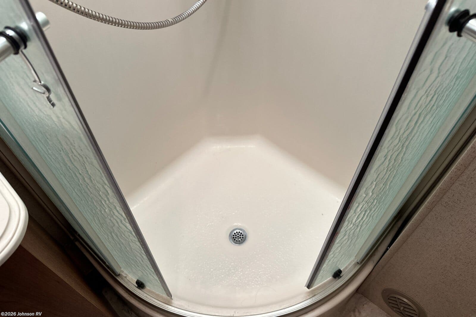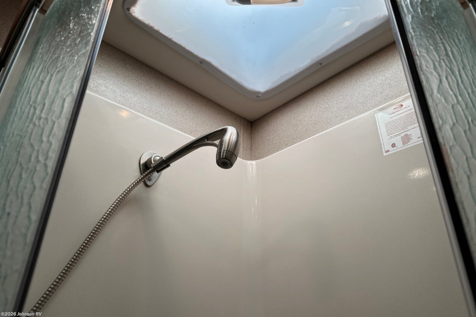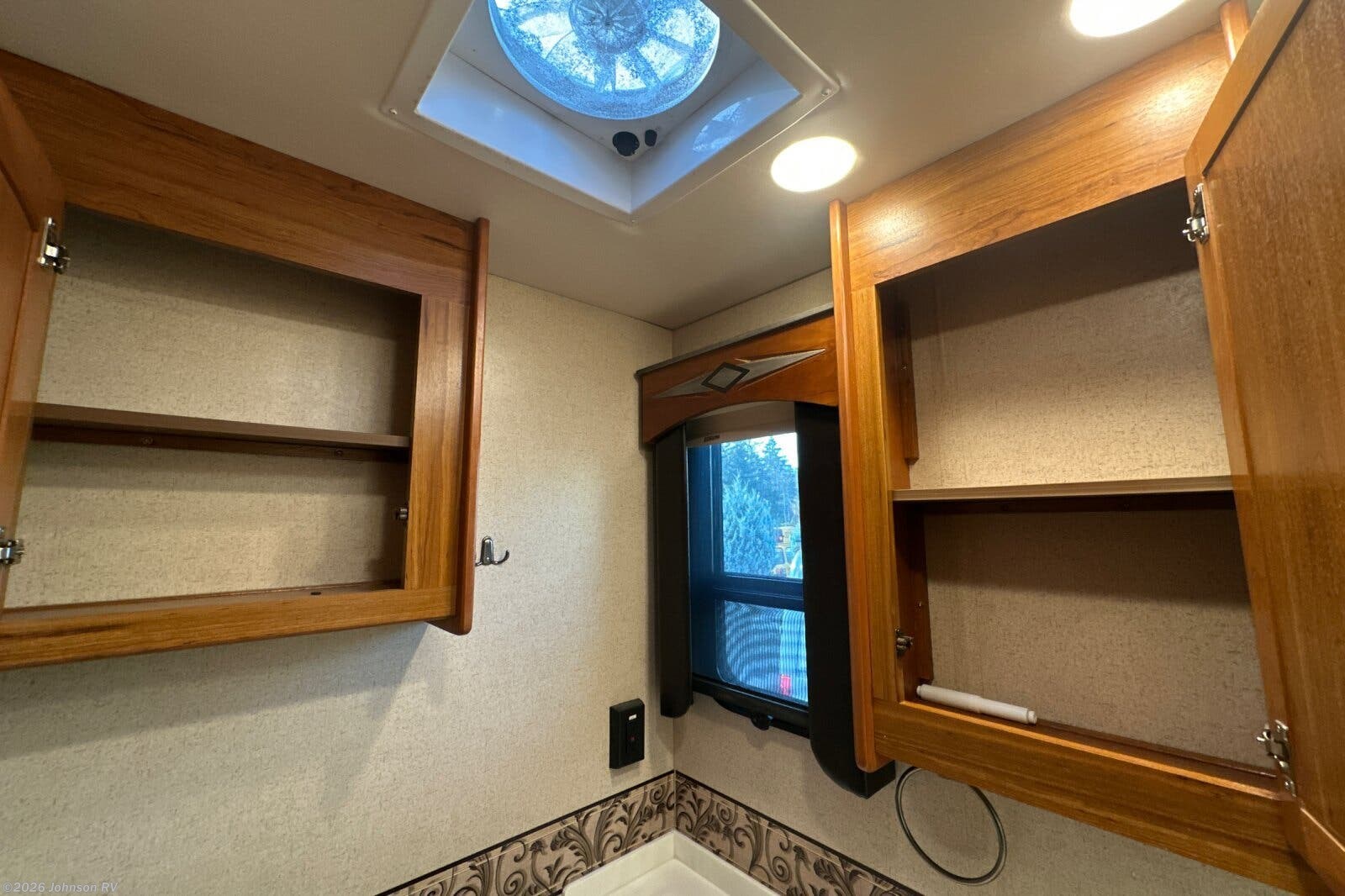 The 2016 Jayco Seneca 37FS is a robust Super C motorhome that blends residential luxury with the durability of a Freightliner M2 chassis. Powered by a 6.7L Cummins ISB diesel engine delivering 340 horsepower and 660 lb-ft of torque, this RV is built for long-haul comfort and towing confidence, with a 10,000-pound hitch rating and a 74-gallon fuel tank. Measuring 38.8 feet in length, the 37FS features two slide-outs that expand the living space, accommodating up to 10 people. The floorplan includes a rear king bed, a set of bunk beds, a cab-over queen bed, a hide-a-bed sofa, and a convertible dinette. The mid-coach bathroom offers a corner shower, porcelain toilet, and ample storage. The kitchen is equipped with a full-size 12 cu. ft. refrigerator with ice maker, convection microwave, two-burner cooktop, and solid-surface countertops. Entertainment options include three TVs (including an exterior entertainment center), surround sound, and a touch-screen infotainment system with GPS.