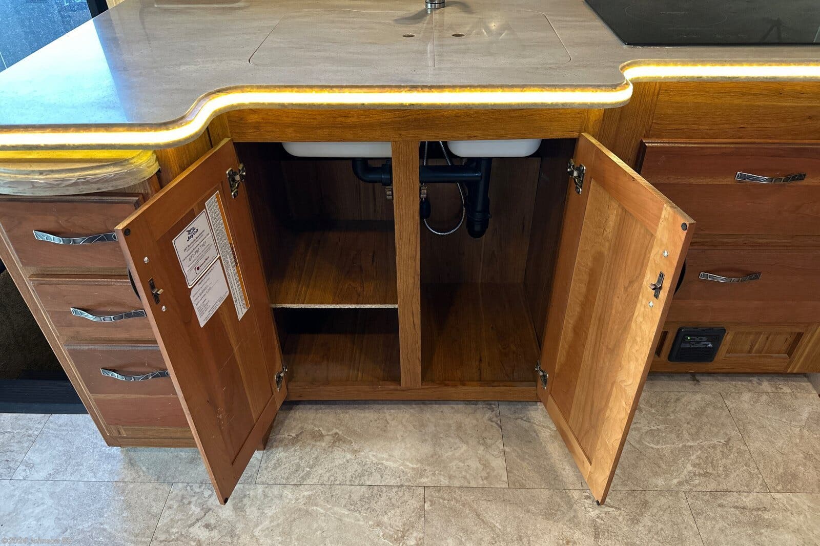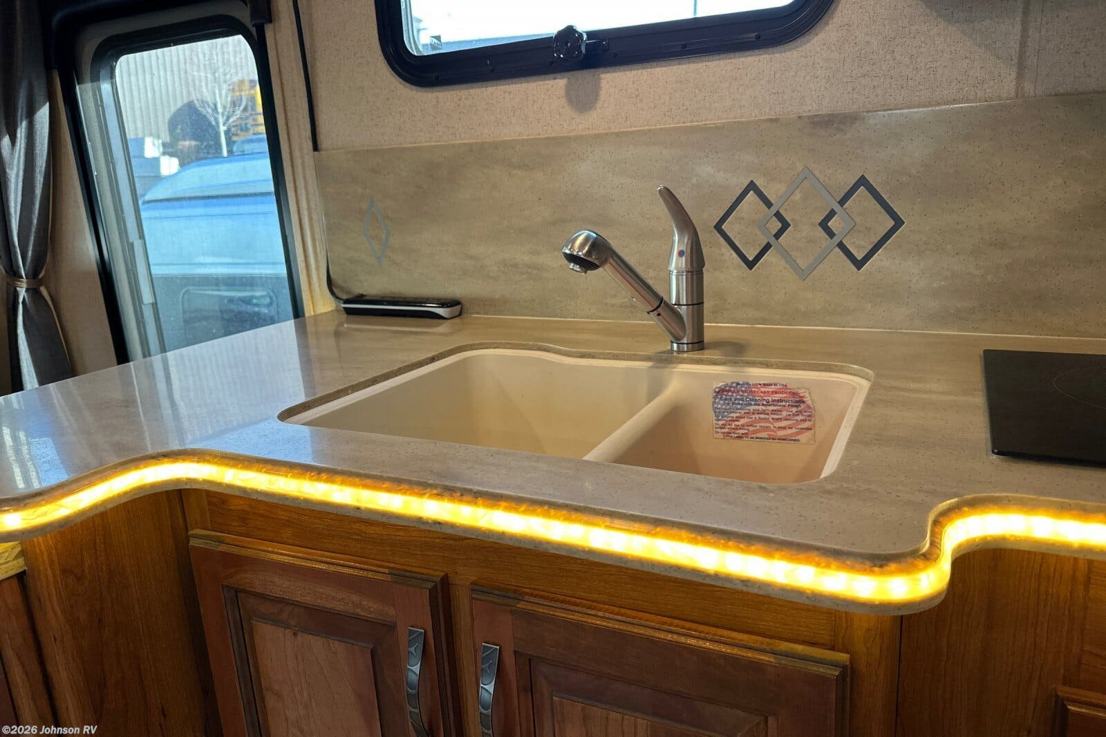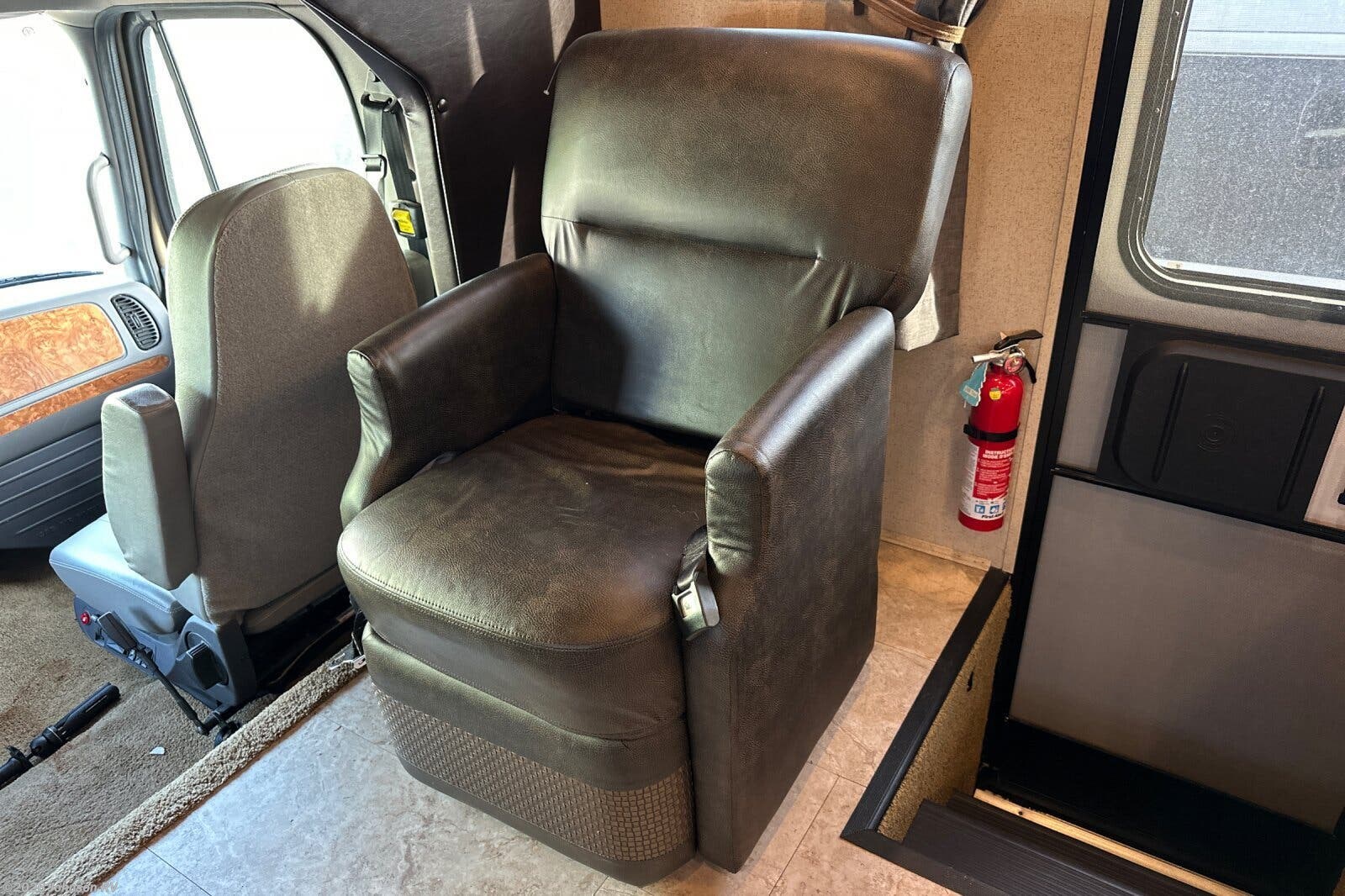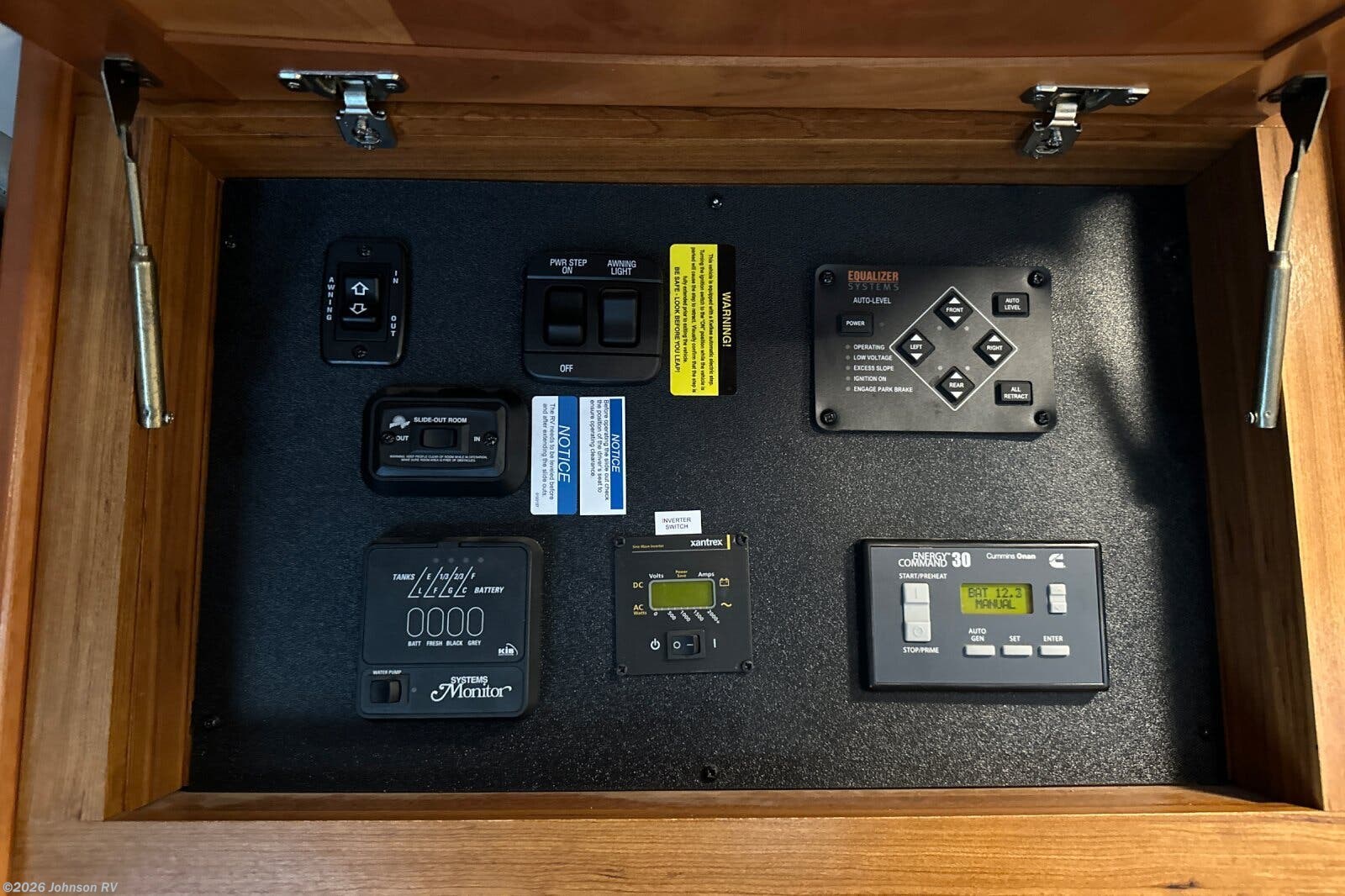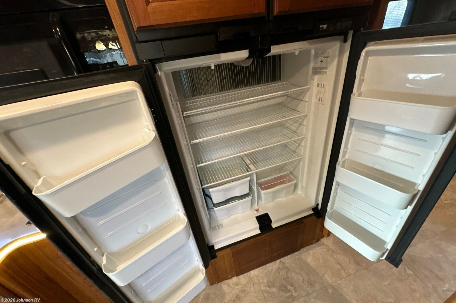 The 2016 Jayco Seneca 37FS is a robust Super C motorhome that blends residential luxury with the durability of a Freightliner M2 chassis. Powered by a 6.7L Cummins ISB diesel engine delivering 340 horsepower and 660 lb-ft of torque, this RV is built for long-haul comfort and towing confidence, with a 10,000-pound hitch rating and a 74-gallon fuel tank. Measuring 38.8 feet in length, the 37FS features two slide-outs that expand the living space, accommodating up to 10 people. The floorplan includes a rear king bed, a set of bunk beds, a cab-over queen bed, a hide-a-bed sofa, and a convertible dinette. The mid-coach bathroom offers a corner shower, porcelain toilet, and ample storage. The kitchen is equipped with a full-size 12 cu. ft. refrigerator with ice maker, convection microwave, two-burner cooktop, and solid-surface countertops. Entertainment options include three TVs (including an exterior entertainment center), surround sound, and a touch-screen infotainment system with GPS.