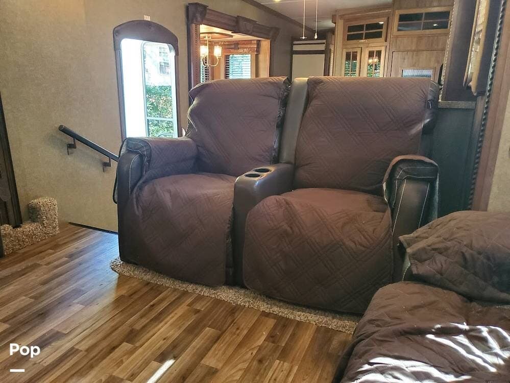 Introducing a 2016 Keystone Alpine 3660FL - a large floorplan fifth wheel offering comfort, space, and residential-style features that set it apart. With six slideouts and a spacious front living room layout, this unit is perfect for extended stays or full-time living.