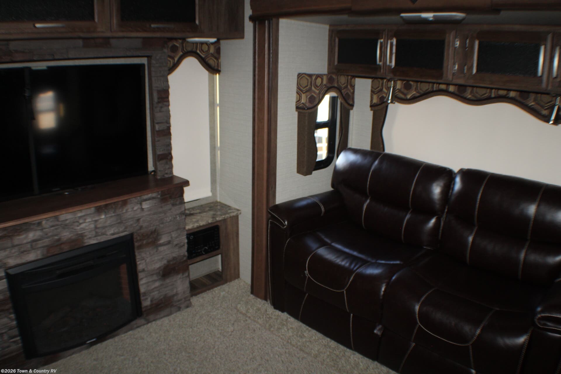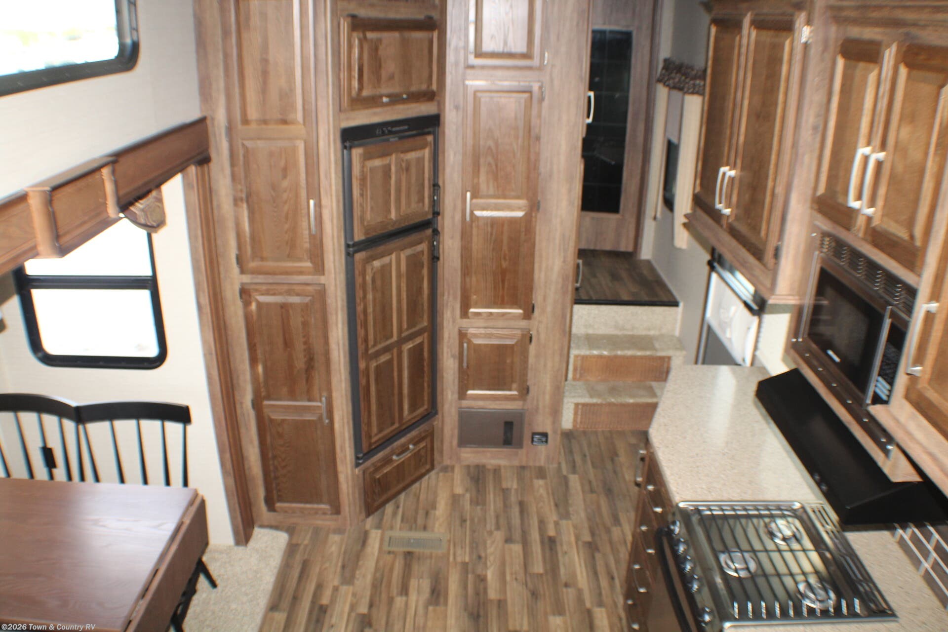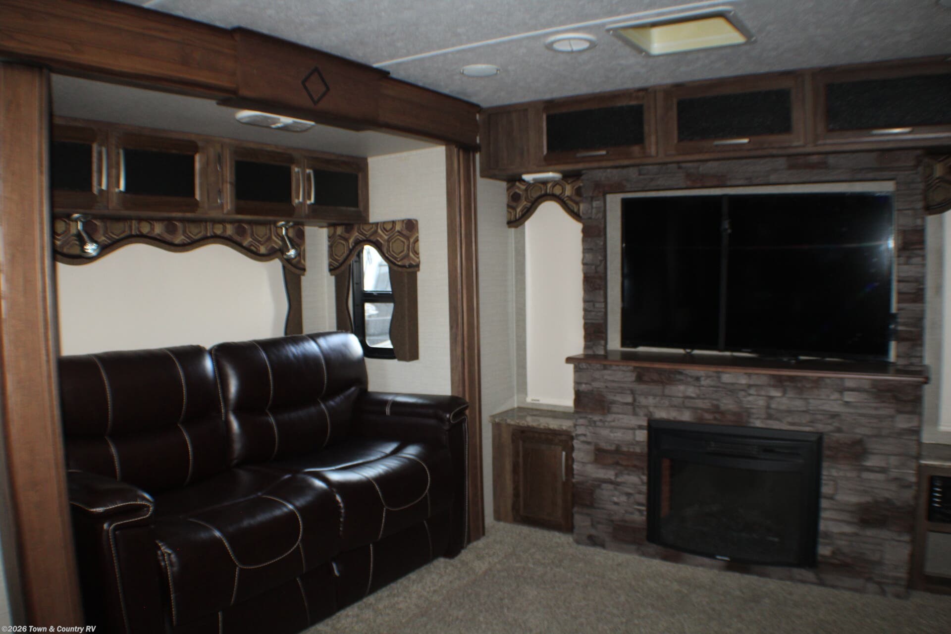 Front Bedroom - Front Bathroom: 4 Slides, Air, Awning, Furnace, Back Ladder, Rear Living Area, TV/Fireplace, 2 Sofa/Beds, Theater Seating, Mid Kitchen, Oven/Stove, Double Sink, Refrigerator, Microwave, Free Standing Dinette, Pantry, Sleeps 6, GVWR: 10,462#, Unloaded Weight: 8,684#.
