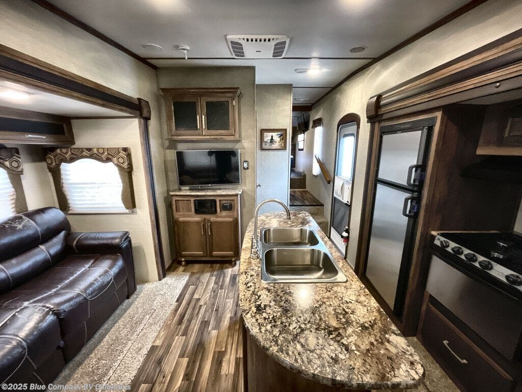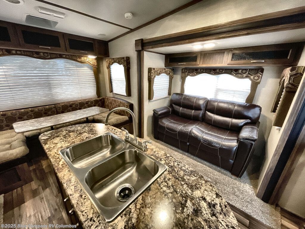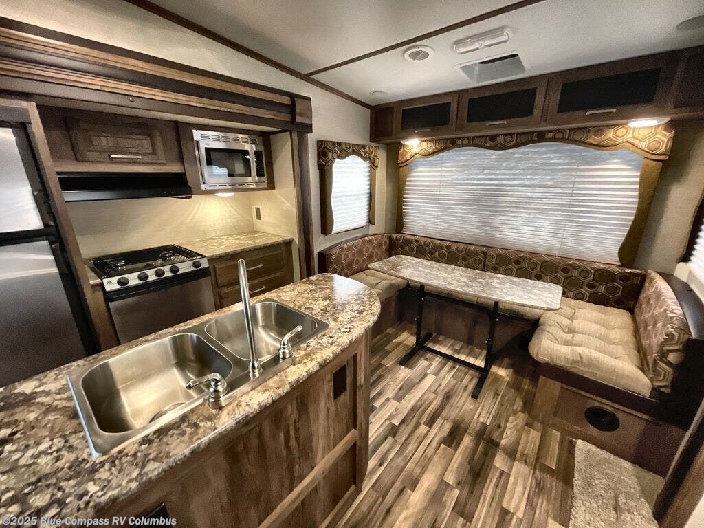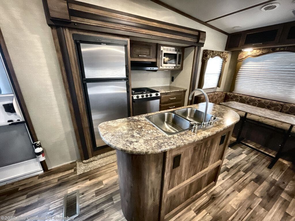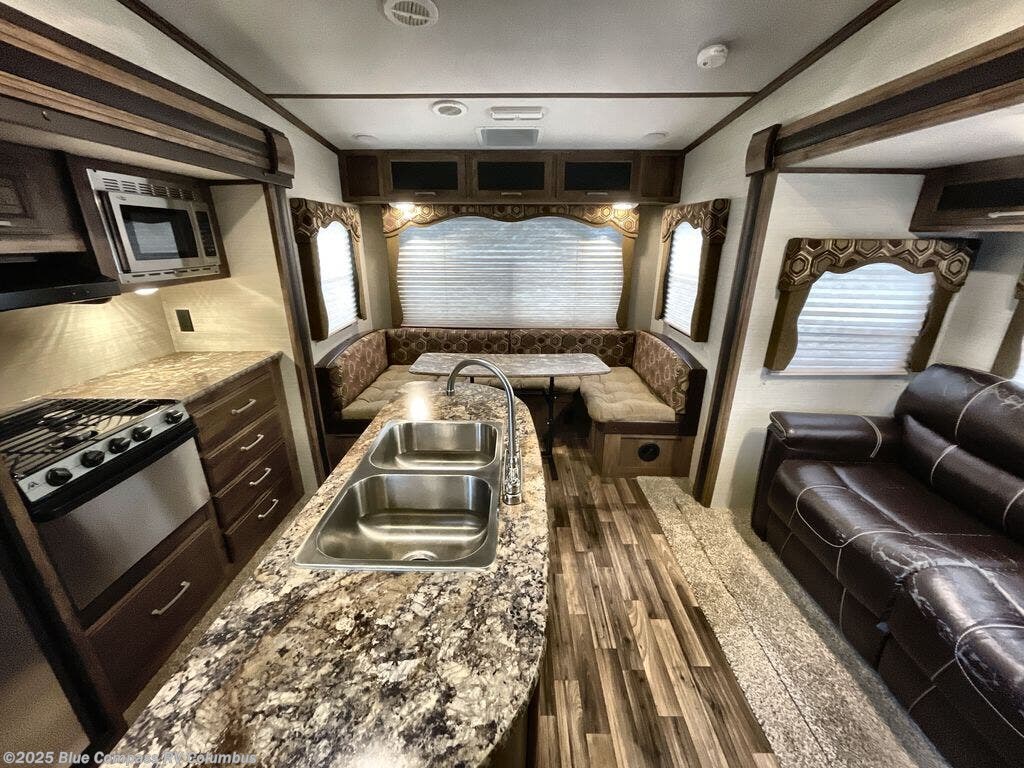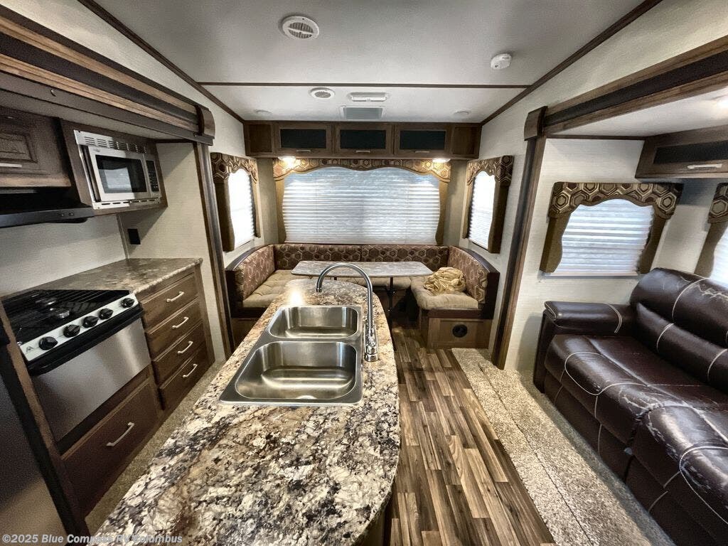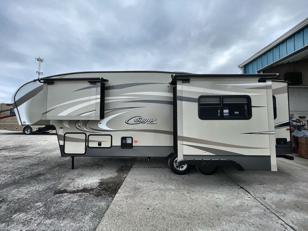 This Cougar X-Lite fifth wheel 27RDS by Keystone RV features a rear u-shaped dinette, kitchen island, walk-in pantry, triple slides, plus more inside and out!