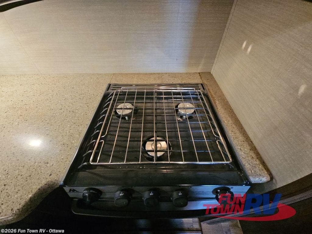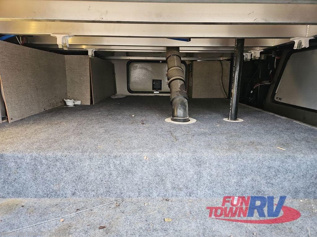 Opposite within the kitchen amenities slide is a L-shaped sofa with storage above. Seated here you can easily enjoy conversation with family and friends, and also enjoy watching your favorite movies or television on the rear entertainment center that stretches across the entire width of the unit.
