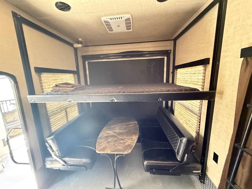 This 2016 Fuzion 420 Toy Hauler 42 ft triple-axle toy hauler offers the perfect mix of comfort, space, and capability.