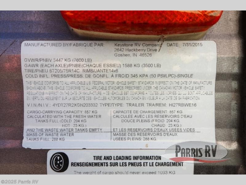 Request More Info on this 2016 Keystone Hideout 27RBWE Offered for sale by Parris RV