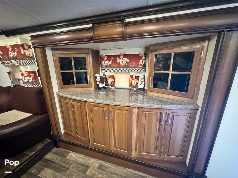 This amazing RV has the lifetime roof, reupholstered furniture.