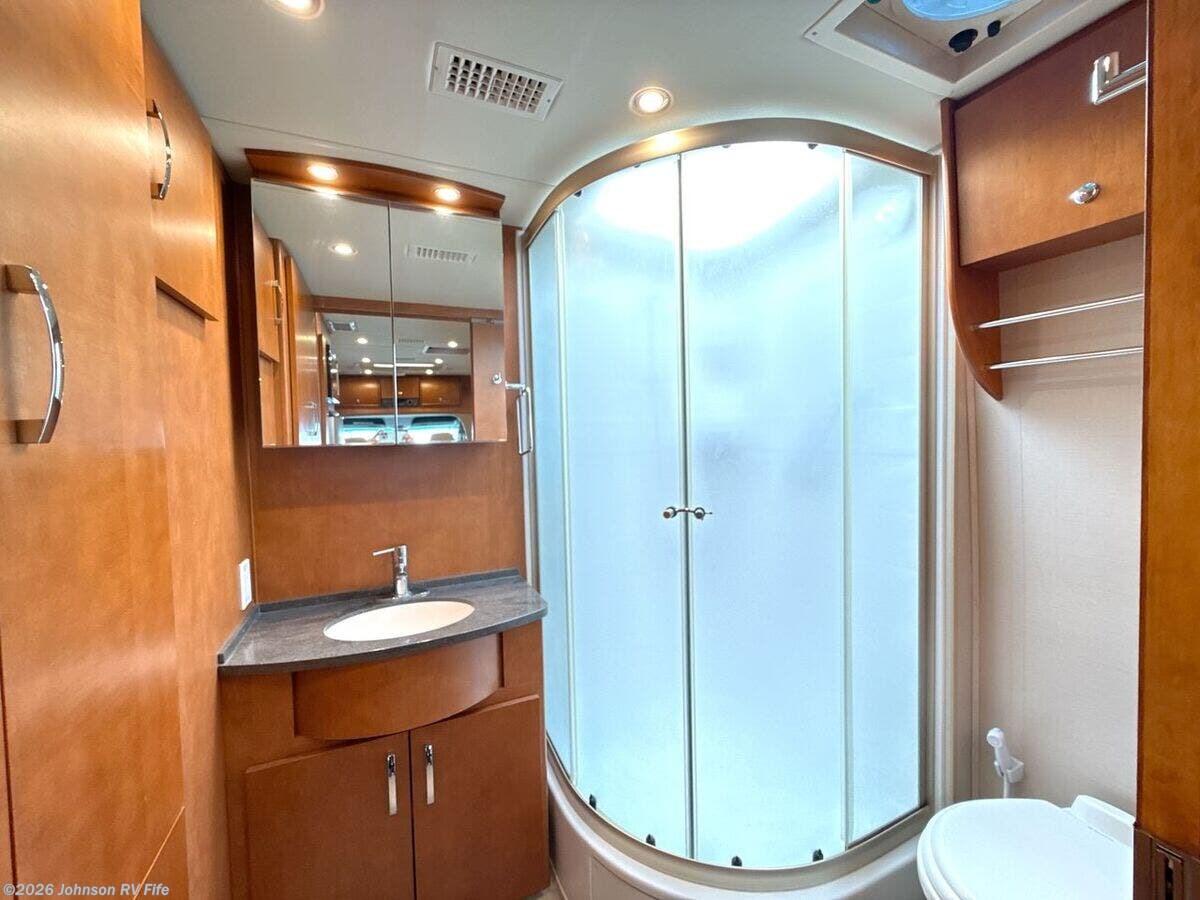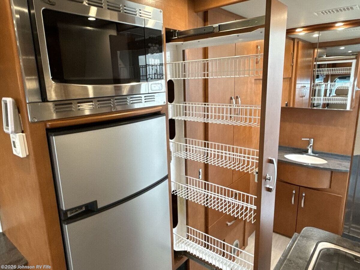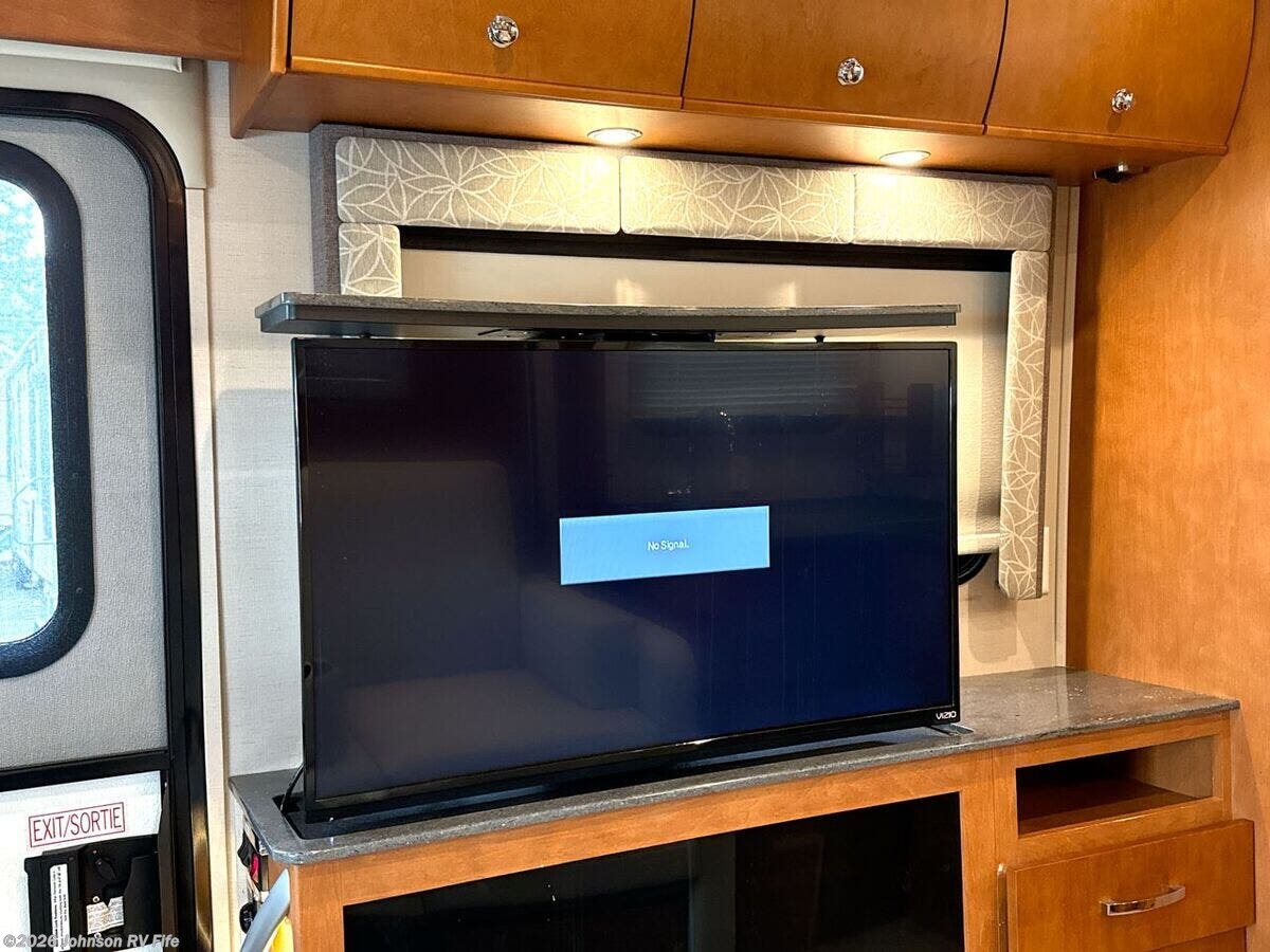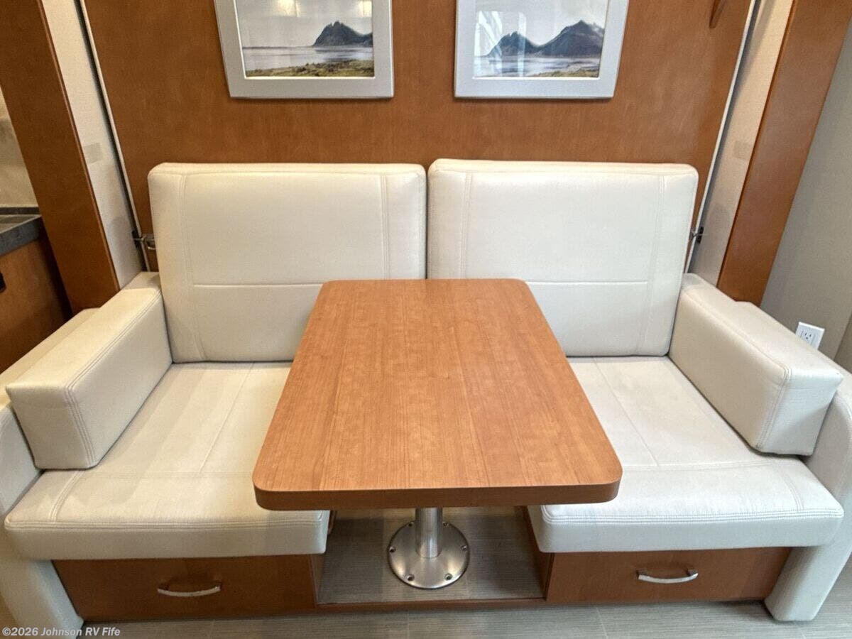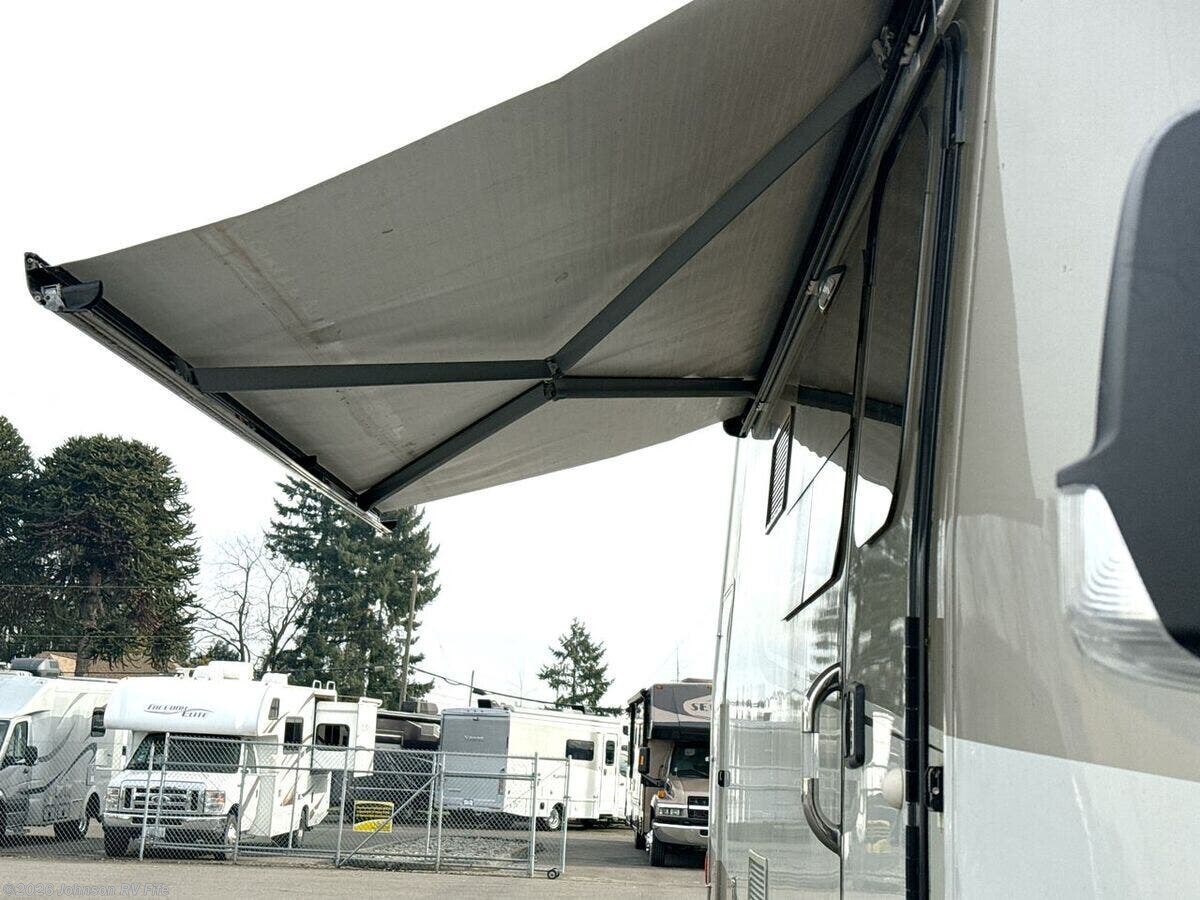 Features Include: 220-Amp Alternator, Dual Rear Wheels, Wheel Simulators, Bi-Xenon Headlamps, Fog Lamps, Lane Keeping Assist, Power Windows, Rear View Camera, Cruise Control, Living Spaces, Patio Light, Vinyl Flooring, Solid Wood Cabinets, Pullout Pantry, Cooktop Glass Cover, Convection Microwave, Systems Center, USB Outlets, Satellite Dish Prep, USB Outlets, Bathroom, Medicine Cabinet, Vanity Sink, Shower Skylight, Porcelain Toilet, 1200w Inverter, 16k Ducted Furnace, Water Filter System, Black Tank Flush, Winterization Kit, Steel Framed Floor, Fiberglass Exterior, Pass Through Storage