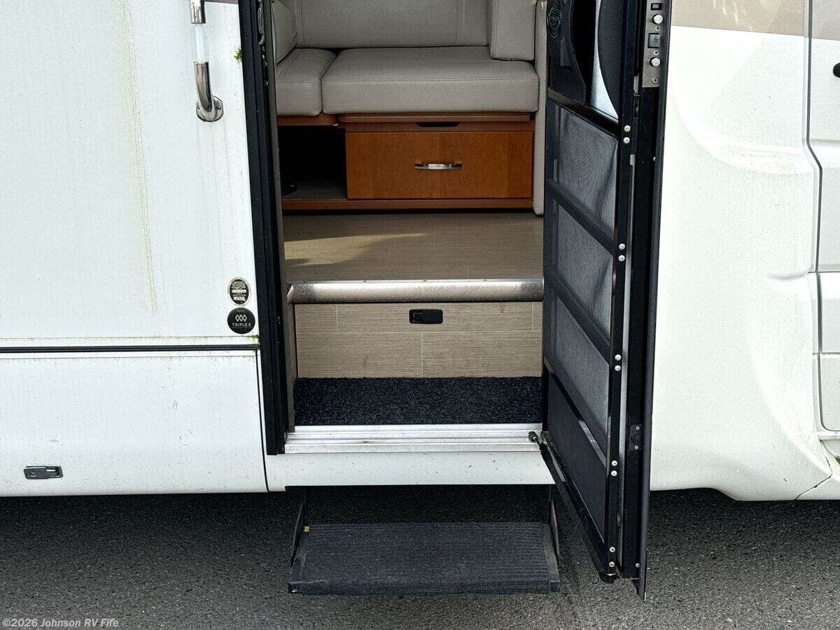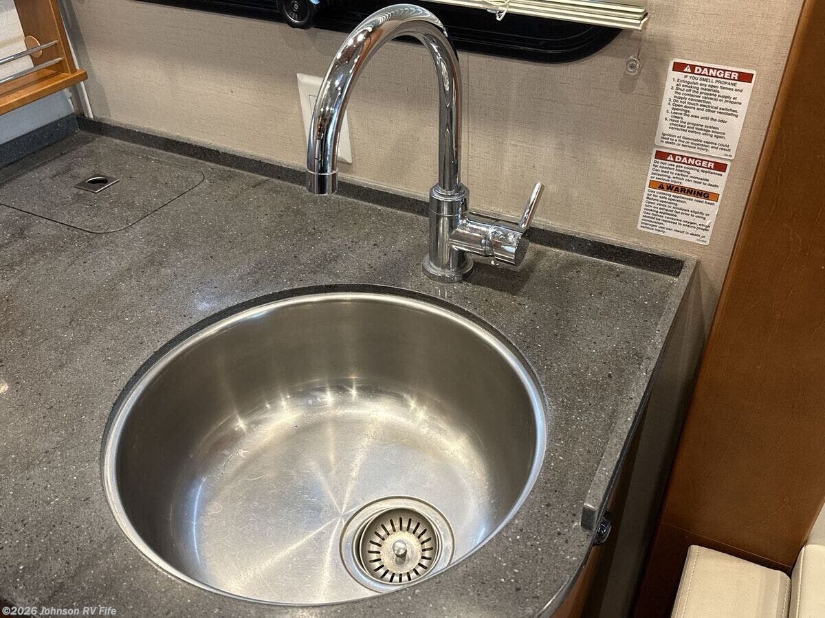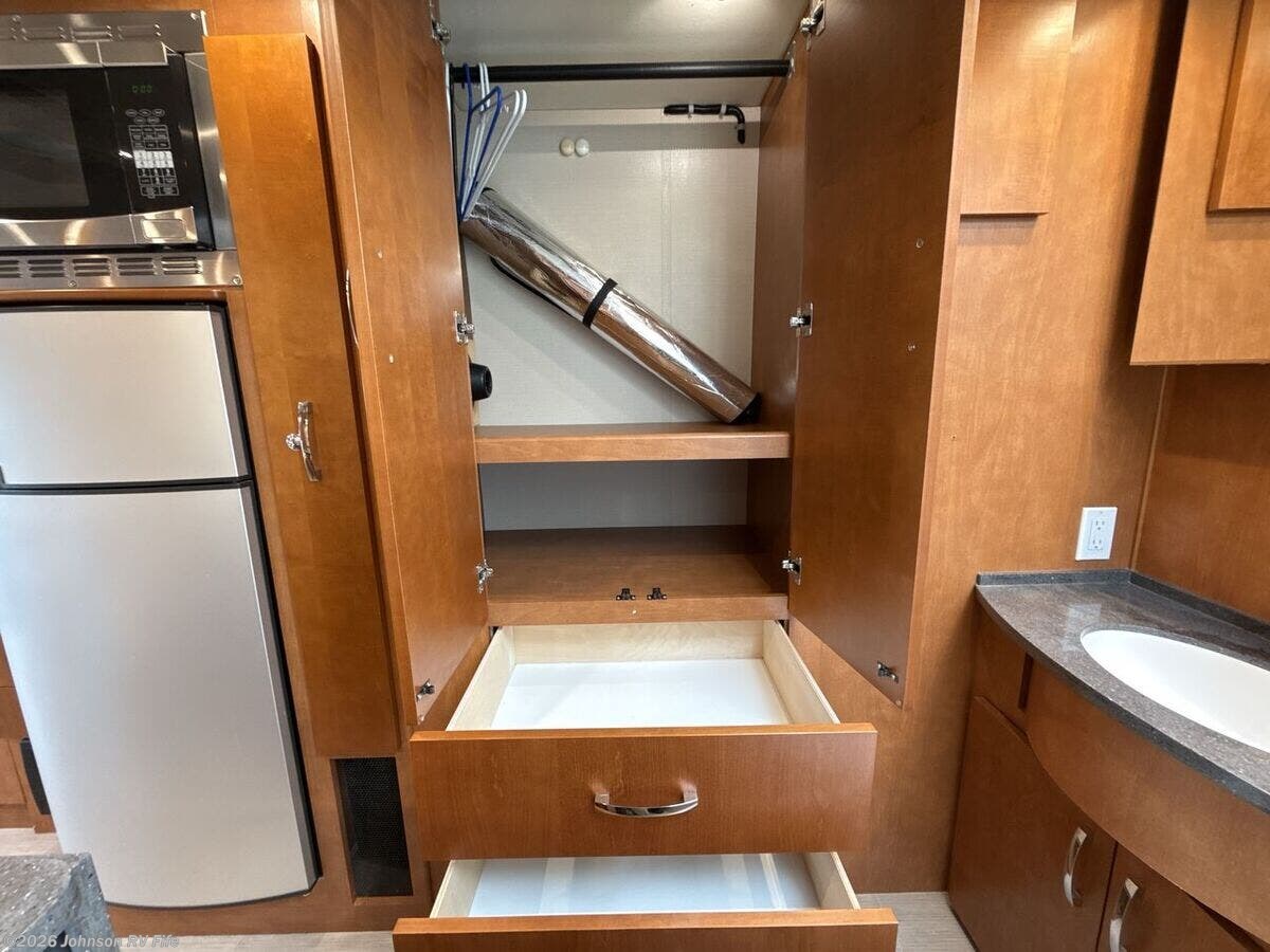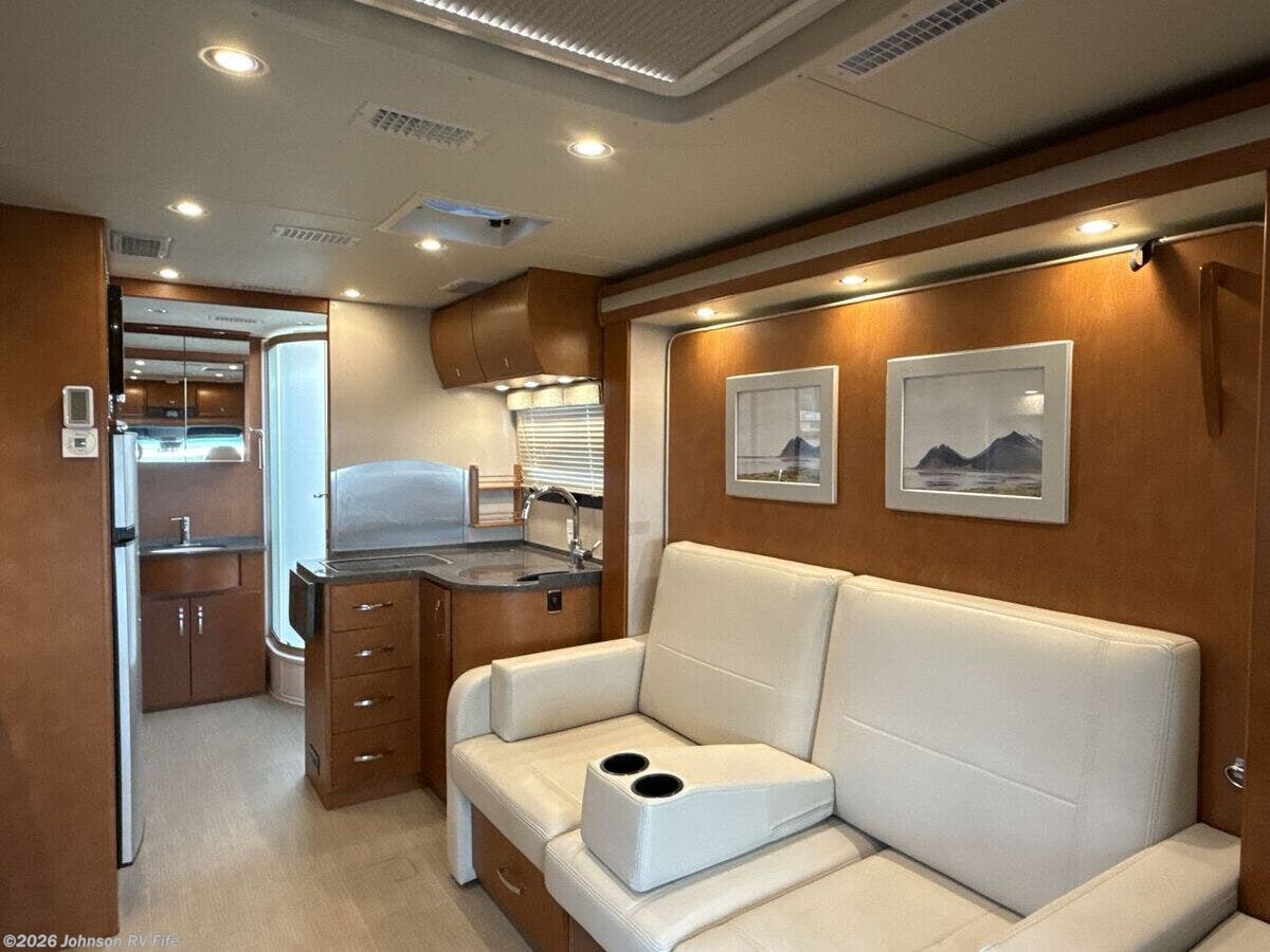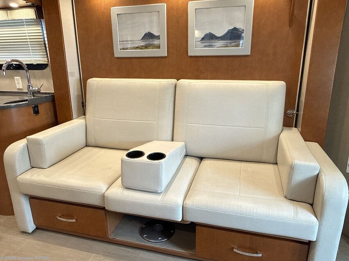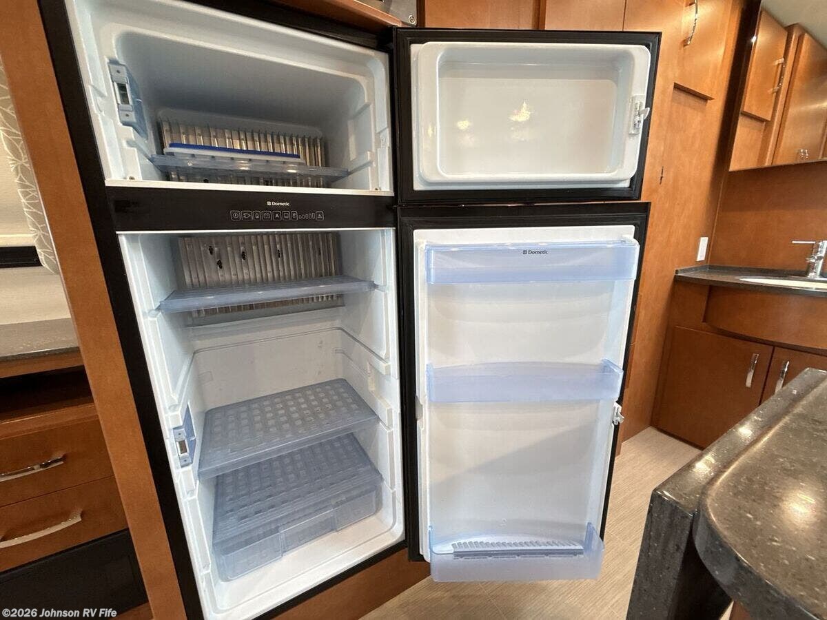 Features Include: 220-Amp Alternator, Dual Rear Wheels, Wheel Simulators, Bi-Xenon Headlamps, Fog Lamps, Lane Keeping Assist, Power Windows, Rear View Camera, Cruise Control, Living Spaces, Patio Light, Vinyl Flooring, Solid Wood Cabinets, Pullout Pantry, Cooktop Glass Cover, Convection Microwave, Systems Center, USB Outlets, Satellite Dish Prep, USB Outlets, Bathroom, Medicine Cabinet, Vanity Sink, Shower Skylight, Porcelain Toilet, 1200w Inverter, 16k Ducted Furnace, Water Filter System, Black Tank Flush, Winterization Kit, Steel Framed Floor, Fiberglass Exterior, Pass Through Storage
