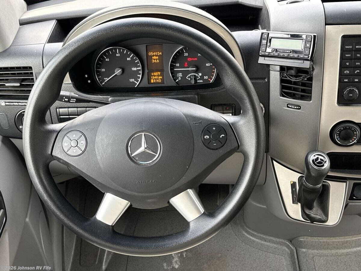2016 Leisure Travel Unity 24MB - Class C RV Discover the open road in the comfort and luxury of the 2016 Leisure Travel Unity 24MB, a sophisticated and well-equipped Class C RV designed on a Mercedes-Benz Sprinter 3500 Cab Chassis. **Performance and Chassis** - Mercedes-Benz Sprinter 3500 Cab Chassis - 3L V6 BlueTEC Turbo Diesel Engine producing 188 HP and 325 lb-ft of torque - Equipped with a 220-Amp Alternator and MB 5-Speed Automatic Transmission - Dual Rear Wheels with Wheel Simulators - 5000# Hitch and Wiring for towing ease ?? **Safety Features** - Auto lights with High Beam Assist - Bi-Xenon Headlamps and Fog Lamps for enhanced visibility - Light and Rain Sensors - Collision Prevention Assist and Lane Keeping Assist - Crosswind Assist for stable driving **Cabin Features** - Outside Courtesy Lighting - Power Door Locks with Keyless Entry and Power Windows - Removable Carpet Mats and MB Ultraleather Swivel Seats for added comfort - Heated Remote Side Mirrors - MB Radio with AM/FM, NAV, and Bluetooth capabilities - Rear View Camera for easy parking - Tilt and Telescoping Steering Wheel - Cruise Control for safer and more comfortable driving **Living Space** - Power Awning with LED Lights and Patio Light - Lit Entry Assist Handle and Retractable Entry Step - Entry Door Screen and Window - Vinyl Flooring with Dimmable LED Lighting - Frameless Tinted Awning Windows and Day/Night Roller Shades - Designer Window Treatments and Opening Skylight with Screen/Shade - Solid Wood Cabinets with Curved Soft Close Upper Doors and Self-Locking Drawers **Cooking and Dining** - Pullout Pantry and Solid Surface Countertops - Counter Extension capabilities - Undermount Stainless Steel Sink and Stainless Steel Backsplash - 3-Way 6.7cf Refrigerator - Convection Microwave and Cooktop with Glass Cover - Thermal Controlled Vent Fan and Outdoor Grill LP Connection ??? **Entertainment and Electronics** - Systems Center with comprehensive controls - USB Outlets for convenient device charging - Satellite Dish Prep and Omnidirectional Antenna - CD, DVD, USB, HDMI, Bluetooth capabilities - LED TVs for entertainment on the go **Sleeping Area** - Residential Quality Mattress for comfort - Additional USB Outlets next to sleeping area **Bathroom Facilities** - Medicine Cabinet and Vanity Sink - Shower Skylight and Porcelain Toilet - Power Vent Fan for ventilation **Mechanical Components** - Battery Disconnect Switch with Two 6v Coach Batteries - 55-Amp Converter Charger and 1200w Inverter - LP Tank Electric Shutoff - 16k Ducted Furnace with Ducted 15k AC and Heat Pump - Water Filter System and Water Heater Bypass Valve - Black Tank Flush, Winterization Kit, and Outdoor Shower **Structural Build** - Vacuum Bonded Construction with Steel Framed Floor - Aluminum Frame Sides and Roof with Fiberglass Exterior - Domed Roof FRP Flexroof - Slideout Topper Awning and Pass-Through Storage - Cargo Door Top Hinge Gas Struts ?? The 2016 Leisure Travel Unity 24MB combines robust engineering with luxury comforts, making it an ideal choice for both short getaways and extended adventures. Perfect your travel experience with this superbly designed Class C RV!