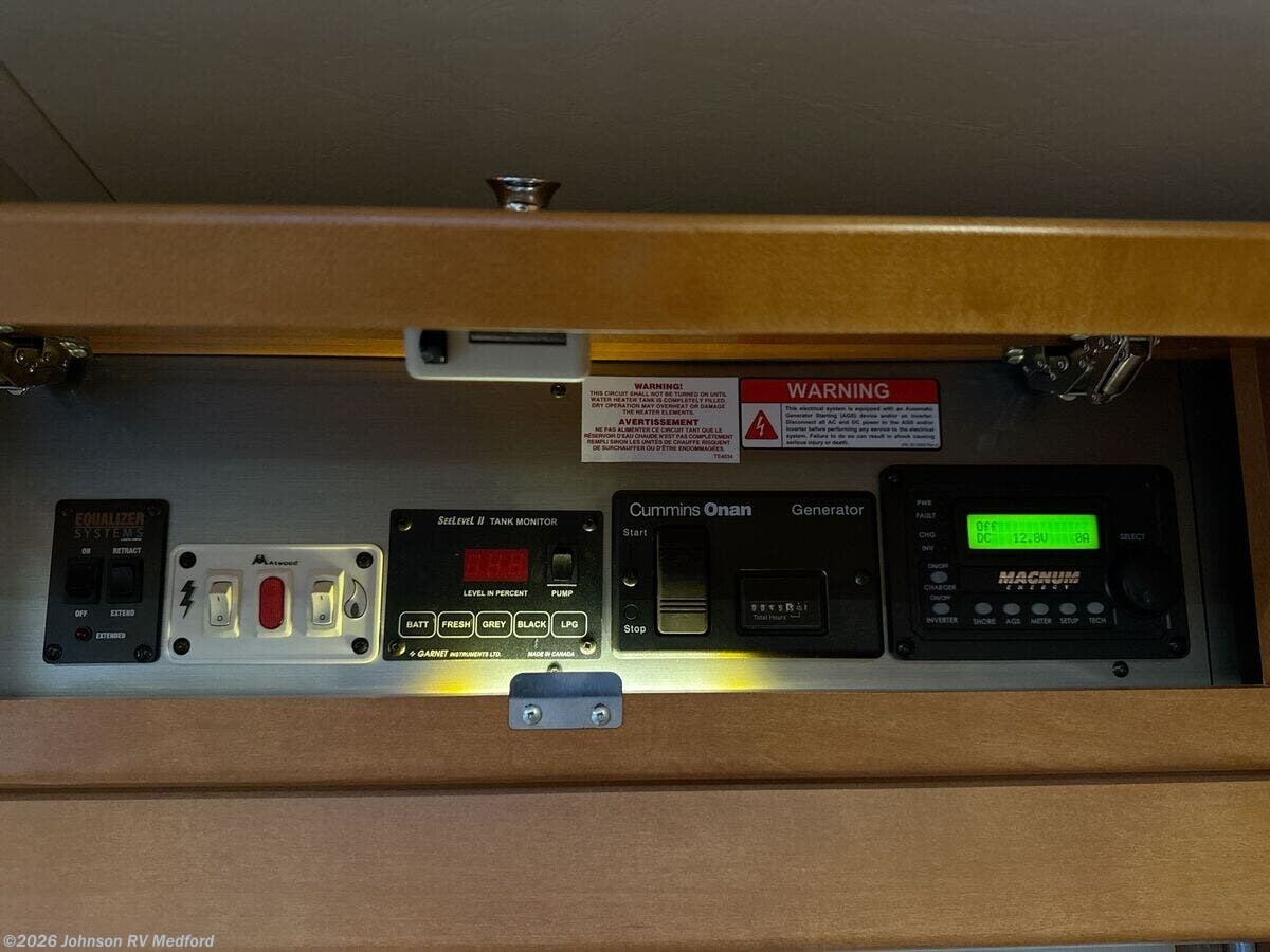 Features Include: 220-Amp Alternator, Dual Rear Wheels, Wheel Simulators, Bi-Xenon Headlamps, Fog Lamps, Lane Keeping Assist, Power Windows, Rear View Camera, Cruise Control, Living Spaces, Patio Light, Vinyl Flooring, Solid Wood Cabinets, Pullout Pantry, Cooktop Glass Cover, Convection Microwave, Systems Center, USB Outlets, Satellite Dish Prep, USB Outlets, Bathroom, Medicine Cabinet, Vanity Sink, Shower Skylight, Porcelain Toilet, 1200w Inverter, 16k Ducted Furnace, Water Filter System, Black Tank Flush, Winterization Kit, Steel Framed Floor, Fiberglass Exterior, Pass Through Storage