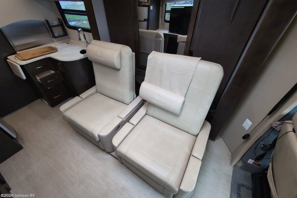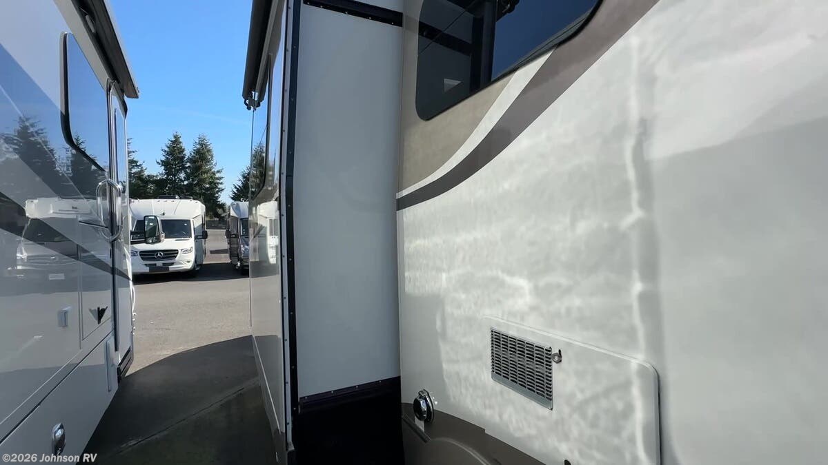 Features Include: 220-Amp Alternator, Dual Rear Wheels, Wheel Simulators, Bi-Xenon Headlamps, Fog Lamps, Lane Keeping Assist, Power Windows, Rear View Camera, Cruise Control, Living Spaces, Patio Light, Vinyl Flooring, Solid Wood Cabinets, Pullout Pantry, Cooktop Glass Cover, Convection Microwave, Systems Center, USB Outlets, Satellite Dish Prep, USB Outlets, Bathroom, Medicine Cabinet, Vanity Sink, Shower Skylight, Porcelain Toilet, 1200w Inverter, 16k Ducted Furnace, Water Filter System, Black Tank Flush, Winterization Kit, Steel Framed Floor, Fiberglass Exterior, Pass Through Storage