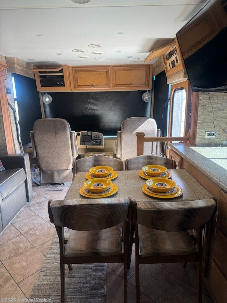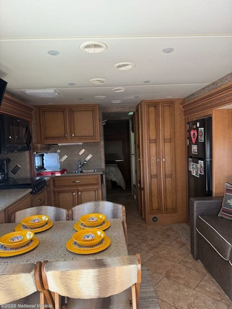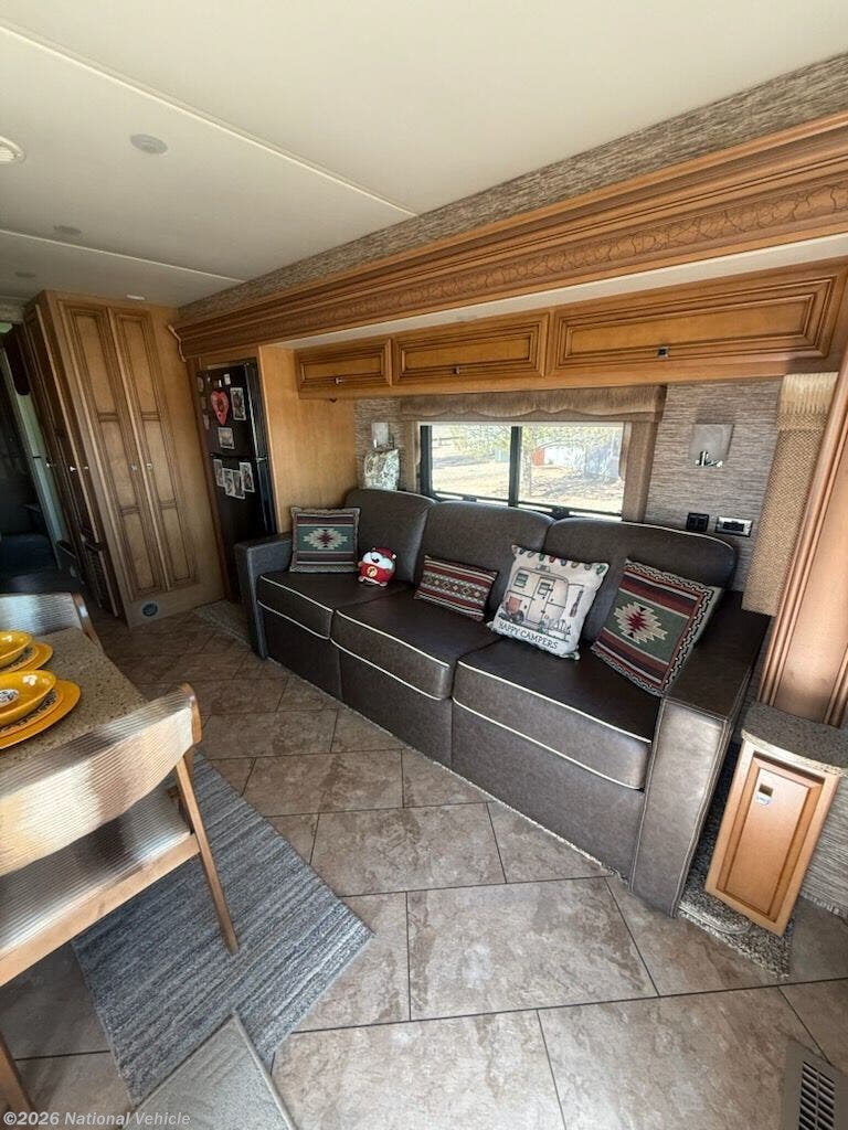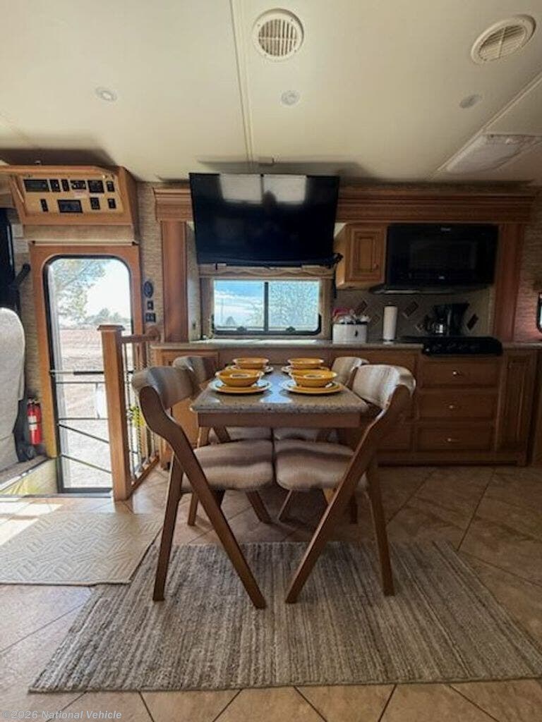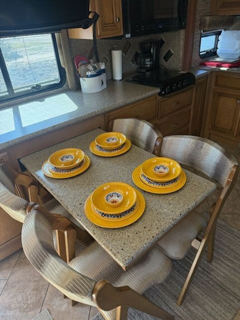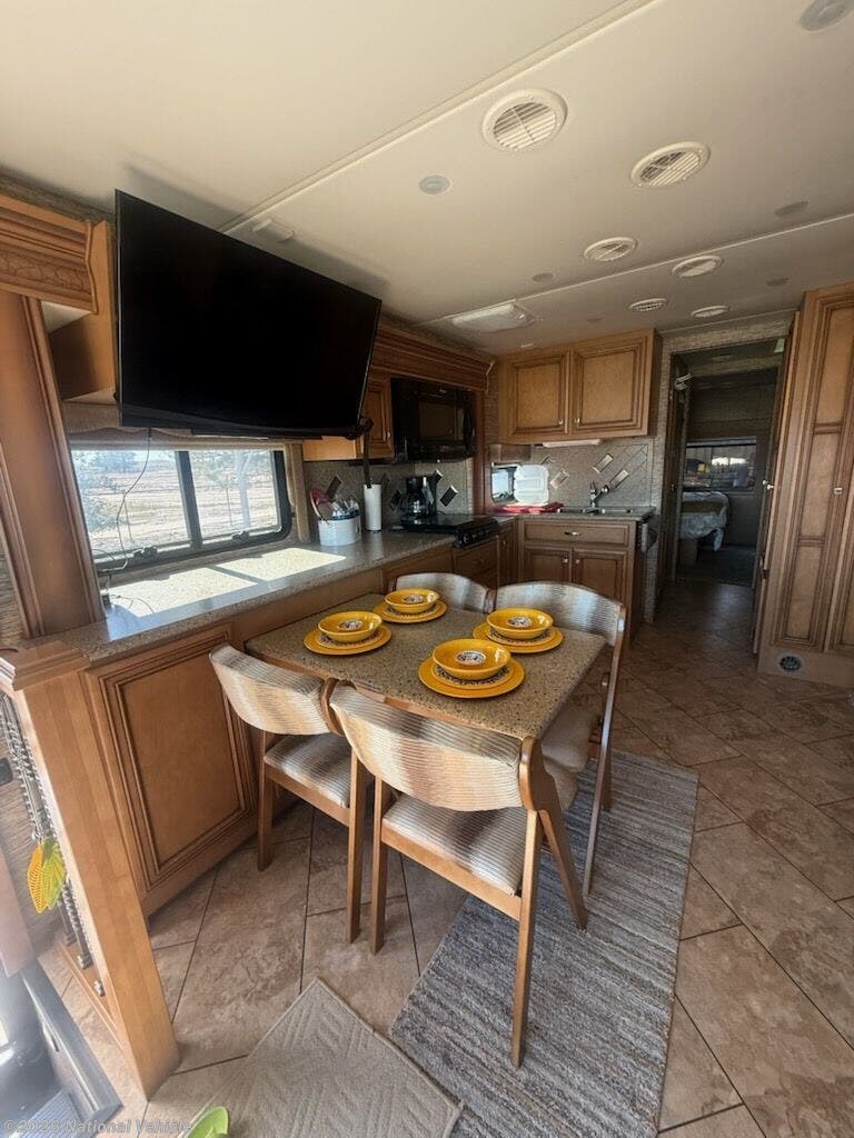 Step inside and take a look back at all of the convenient features that would make any journey enjoyable. The kitchen area features everything you need to prepare great meals on the go including a sink, a three burner range with microwave/convection oven, and a refrigerator/freezer. There is also plenty of storage for all of your dry and canned goods. Have a seat at the table with chairs, where you can enjoy meals with your family.