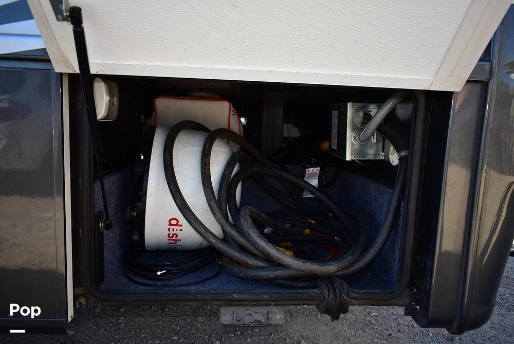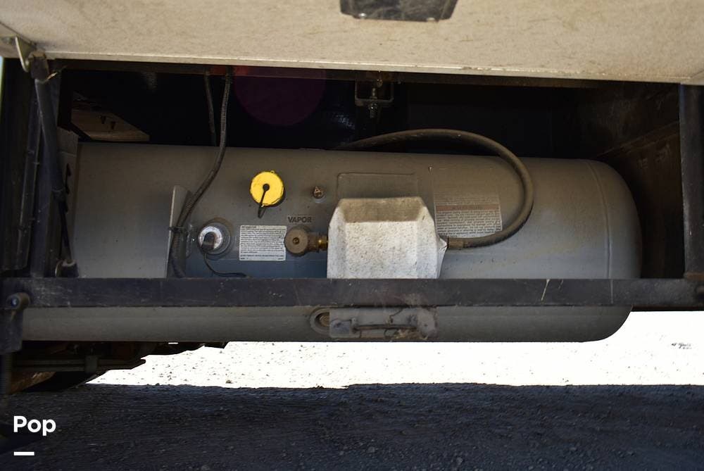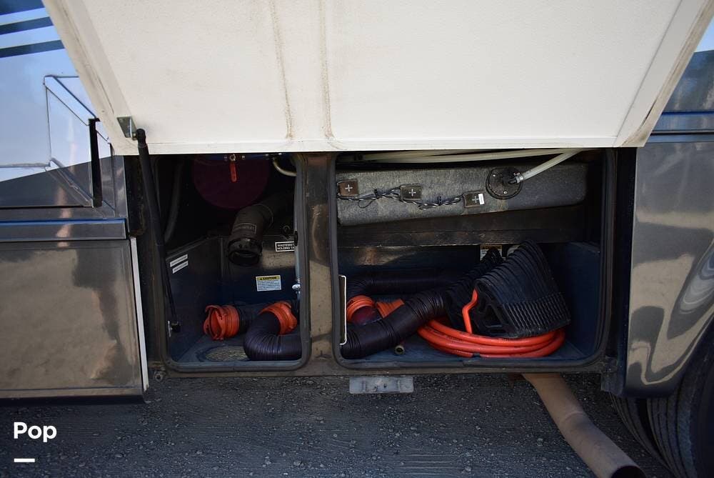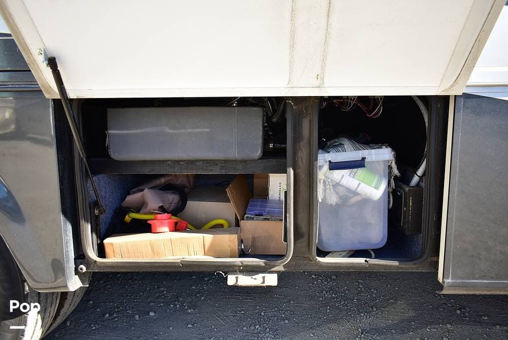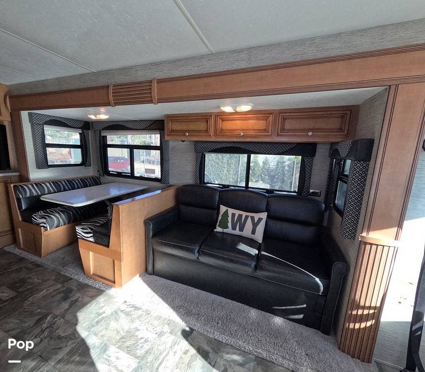 The coach also features a power patio awning, fiberglass exterior for low‑maintenance good looks, stabilizer jacks for a solid feel at camp, and generous holding tanks to support longer stays without sacrificing convenience.