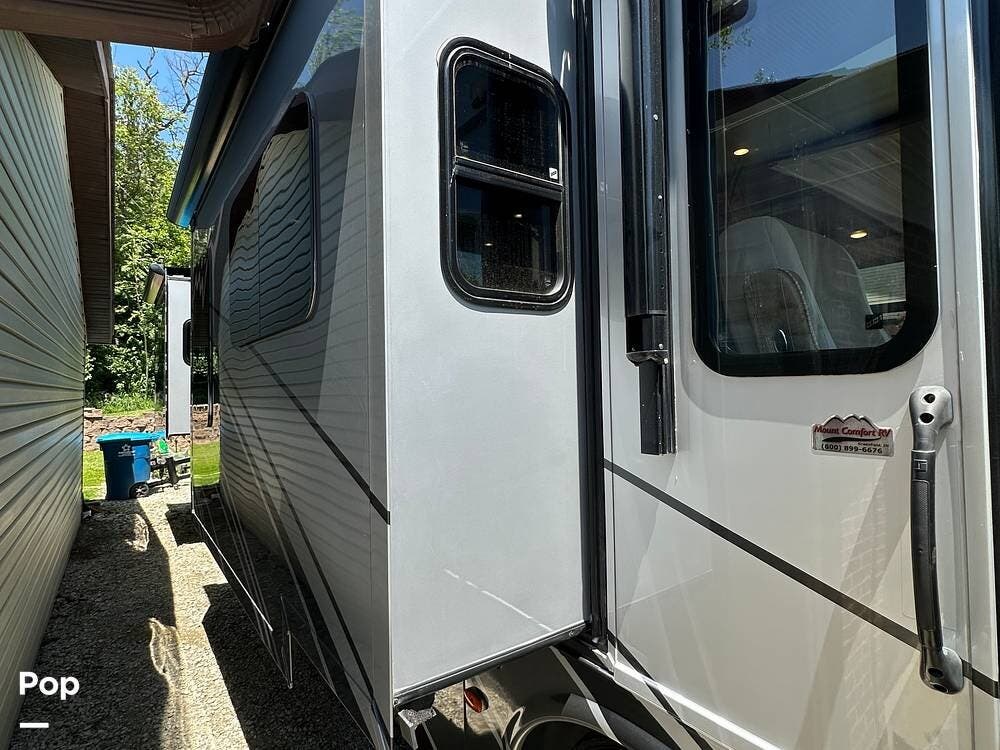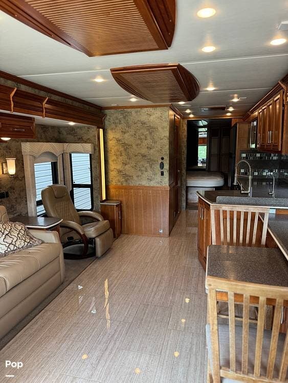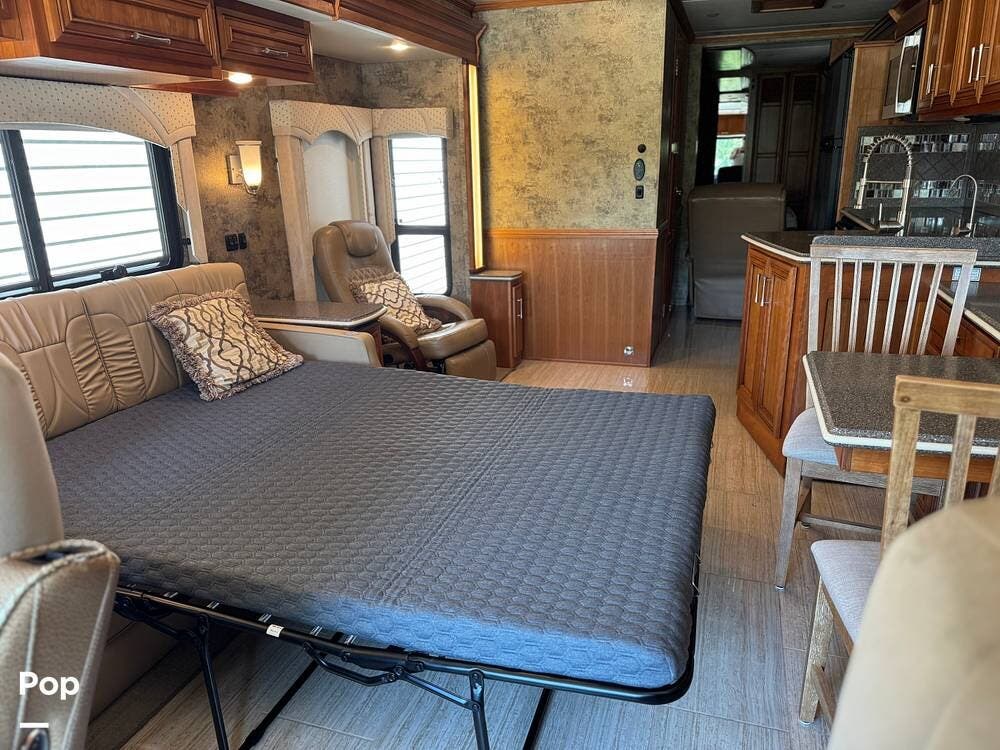 Inside, you'll find high-quality craftsmanship, beautiful cabinetry, solid-surface countertops, and comfortable furniture that makes it feel like home. The well-designed floor plan offers a spacious living area with a new sofa sleeper, a fully equipped kitchen, and a private bedroom, all with plenty of storage.