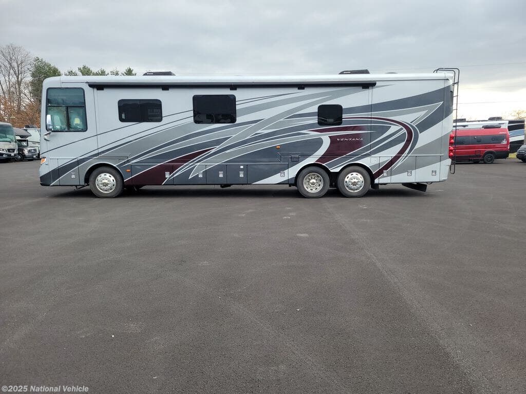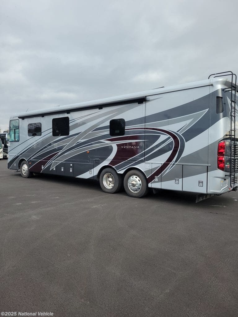Built for serious travel, this model offers substantial capacities and refined construction: a 100-gallon fuel tank, 105-gallon fresh water capacity and a gross vehicle weight rating (GVWR) around 44,000 lbs. With dual air conditioners, hydraulic leveling jacks, solid-frame construction with aluminum body and fiberglass sidewalls, the Ventana is engineered for durability, comfort and long-haul readiness. Whether you?re planning weekends away or a full-time road lifestyle, this coach brings premium design and performance in one luxurious package.