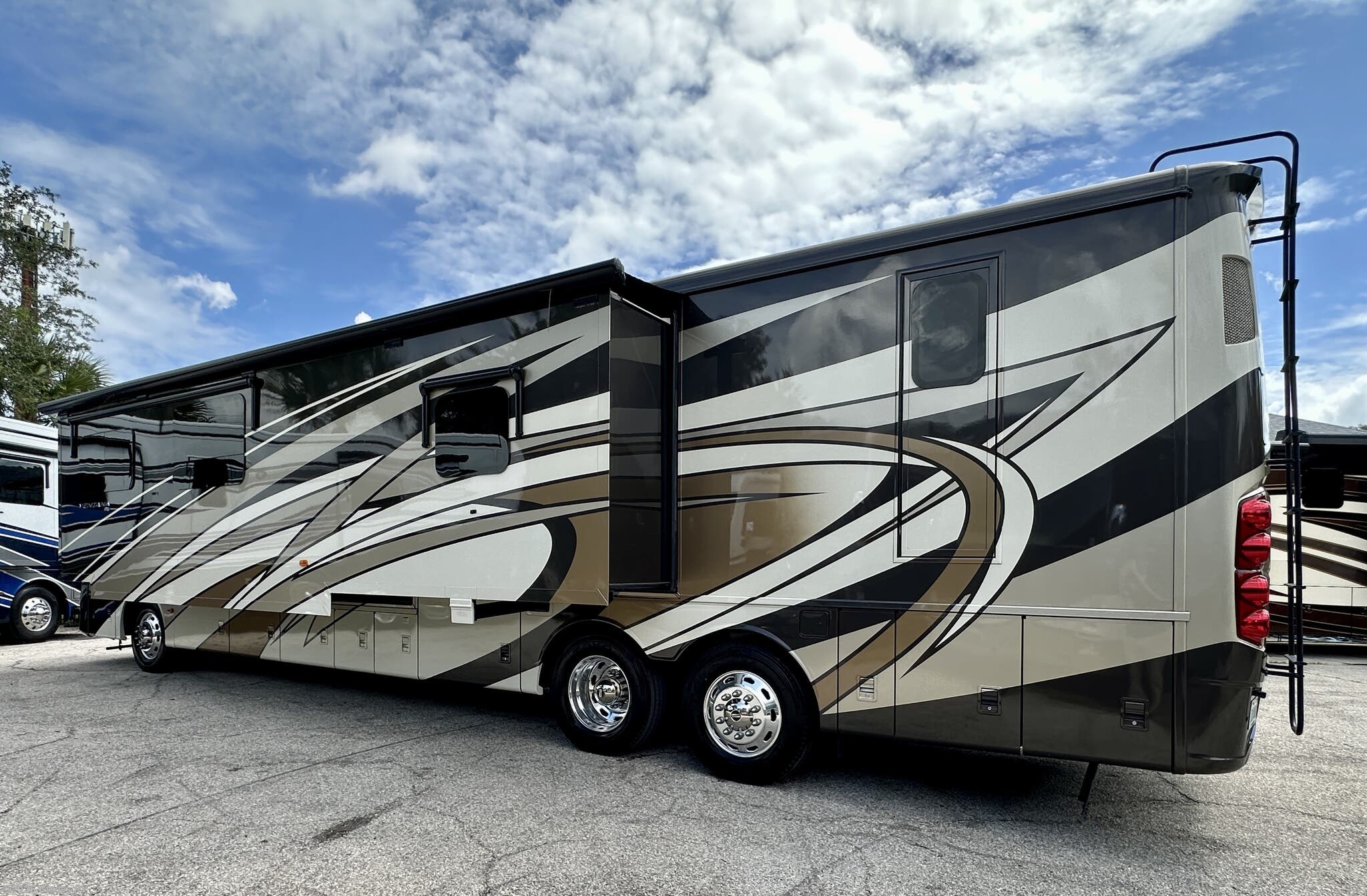 Automatic Leveling Jacks, Backup Monitor, Escape Door, Keyless Entry, Outside Entertainment Center, Power Awning, Power Entrance Step -