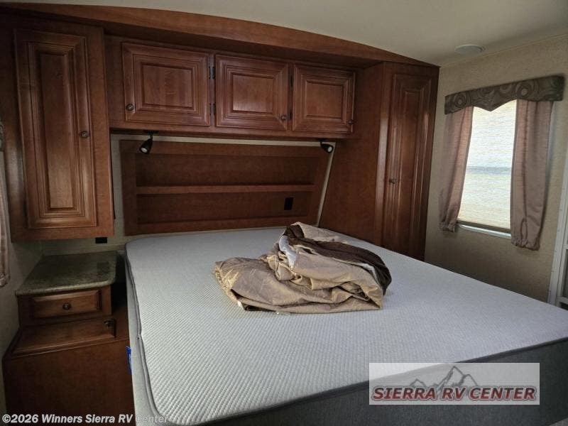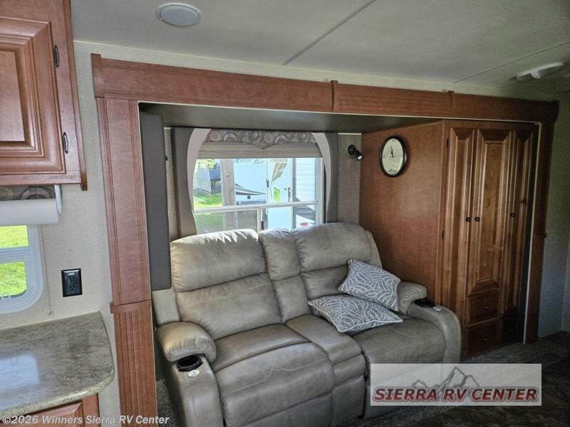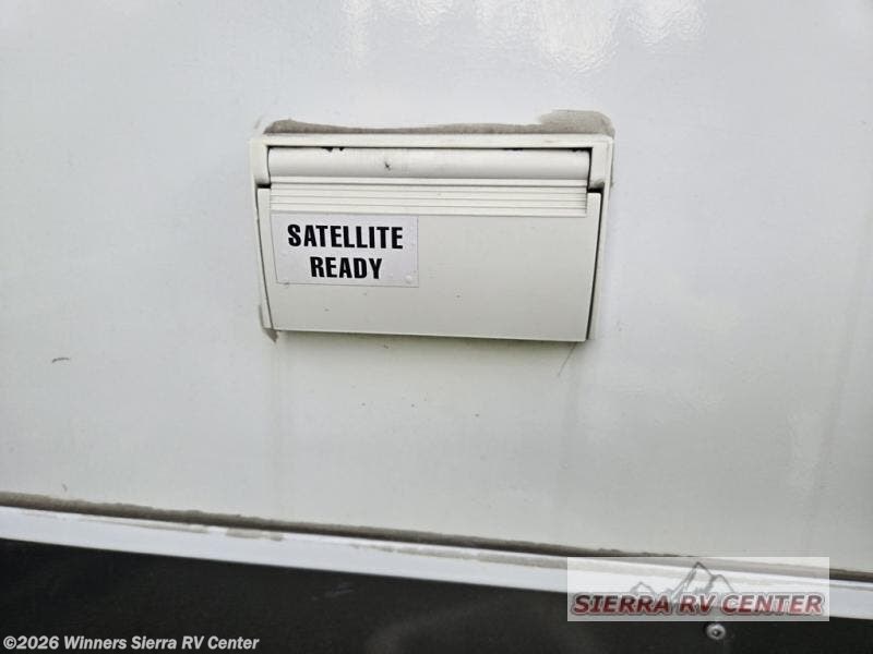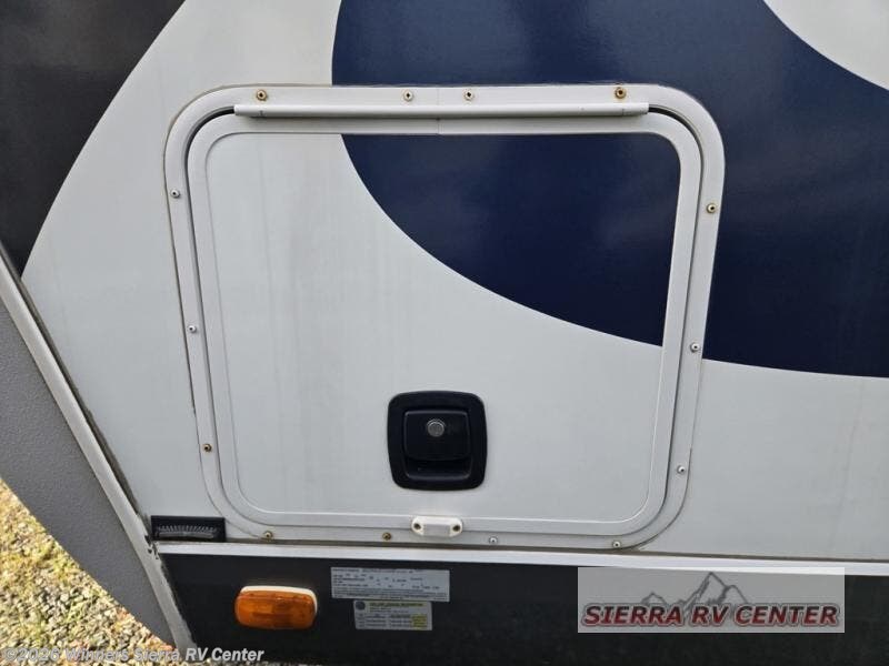 The single slide in this travel trailer provides a more open space and includes a linen cabinet, a wardrobe, a pantry, exterior access storage and a jackknife sofa.