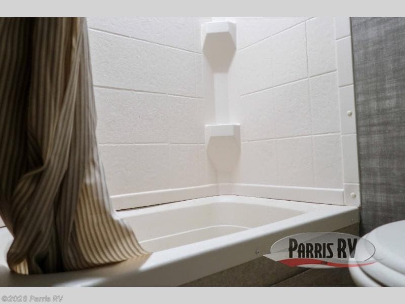 The rear left corner offers a private 36" full tub/shower and toilet. The rear right corner features a set of 28" x 74" bunks that the kids will certainly love, plus so much more!