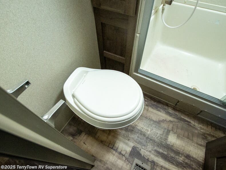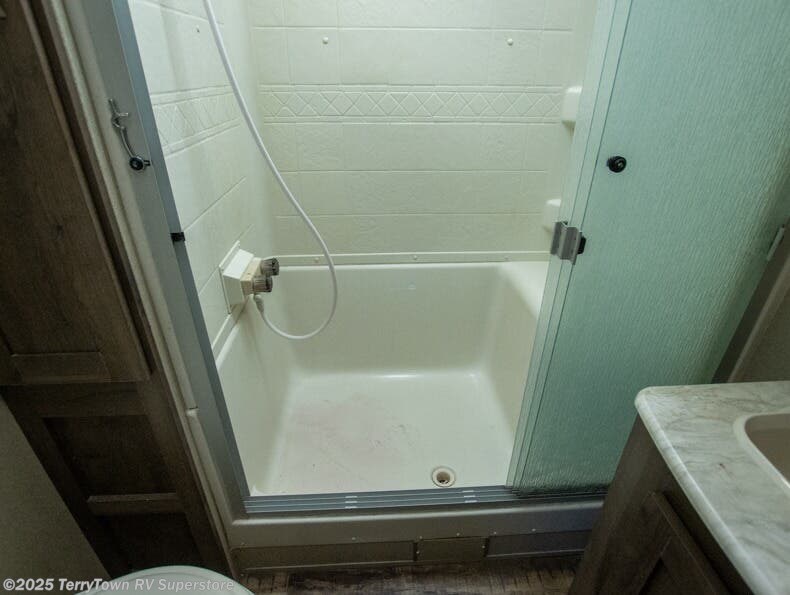 Step inside and notice the convenient location of the bathroom featuring a 30" x 48" shower with seat. There is also a toilet, vanity with sink, plus a linen cabinet for your towels and toiletries.