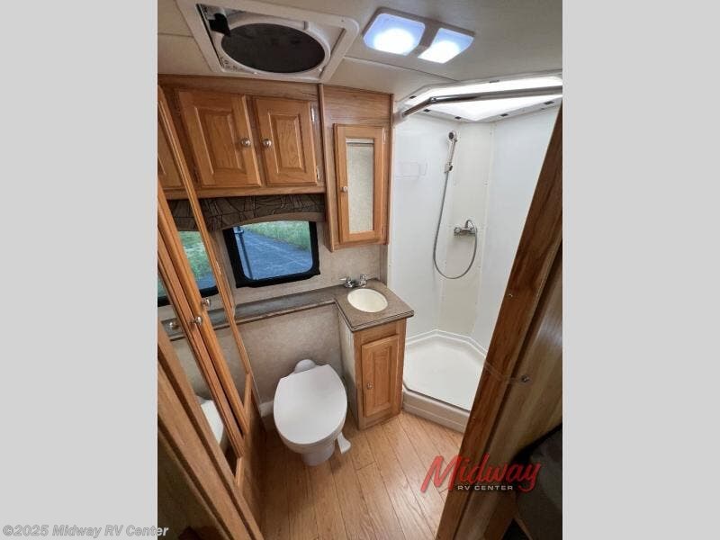 In the rear enjoy the convenience of a full complete bath including: an angled shower, toilet, sink, wardrobe, linen cabinet, and so much more!