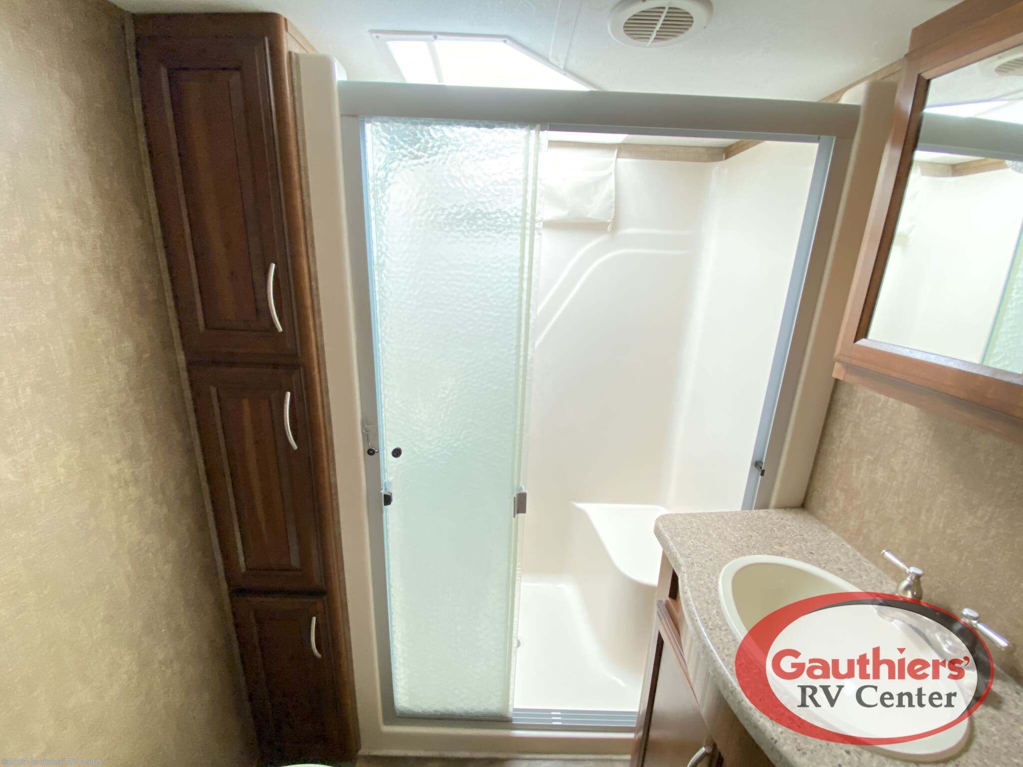 Fireplace, Fold and Tumble Sofa, Free Standing Dinette w/Chairs, Island Kitchen, King Size Bed, Pantry, Pleated Shades, Shower, Solid Surface Countertops, Theater Seating, Toilet, Washer/Dryer Prep