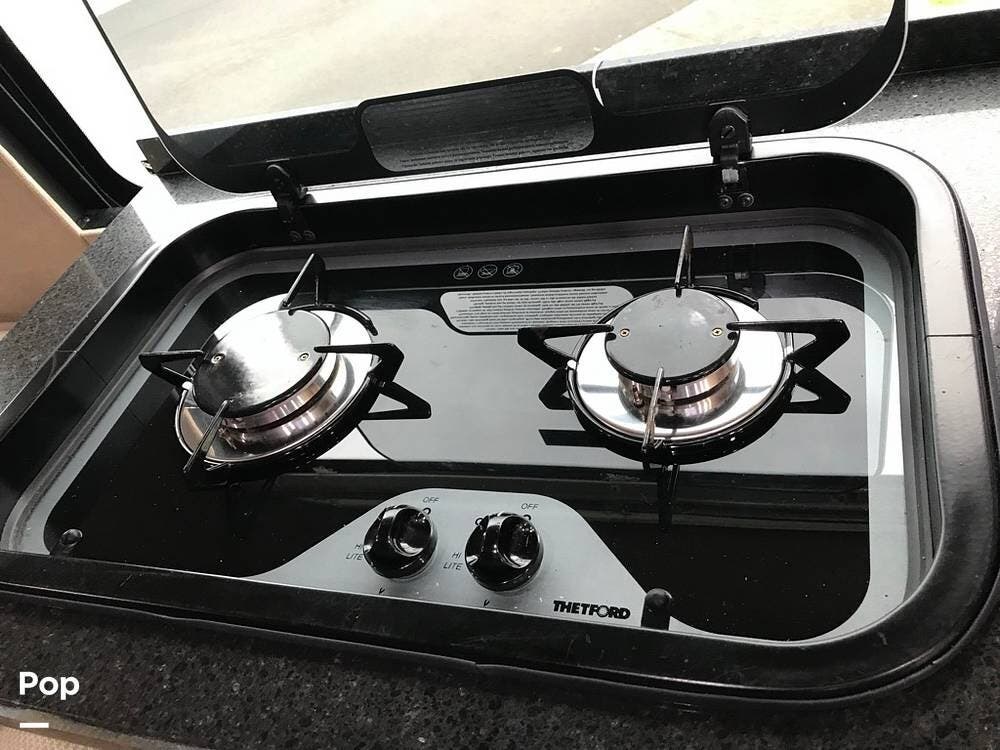 Inside, the open-concept layout maximizes both space and visibility, giving you expansive views and up to 91 cubic feet of interior storage. The rear power sofa seamlessly converts into either twin beds or a spacious king-size sleeping area, allowing sleeping accommodations for up to four people when combined with optional front sleeping. The galley features a recessed two-burner propane stove with flush-mount cover, a 3.6 cu. ft. compressor-driven refrigerator, and a 110V convection microwave, all set within premium cabinetry. The permanent bathroom includes a stand-up shower, integrated sink, and enclosed privacy--rare for a van of this size.