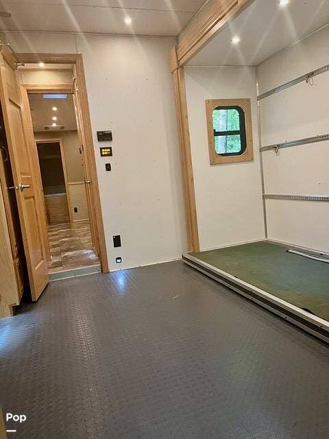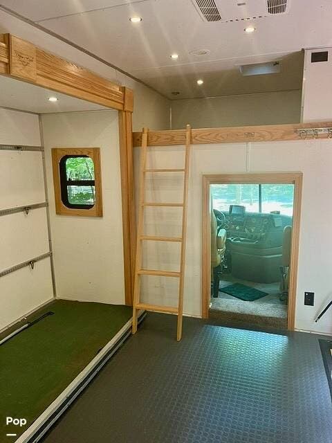 A standout feature of this coach is the custom kennel/workspace area located behind the cab, complete with built-in mounting points. This space is ideal for pet transport, mobile business applications, storage, or can be reconfigured depending on the buyer's needs.