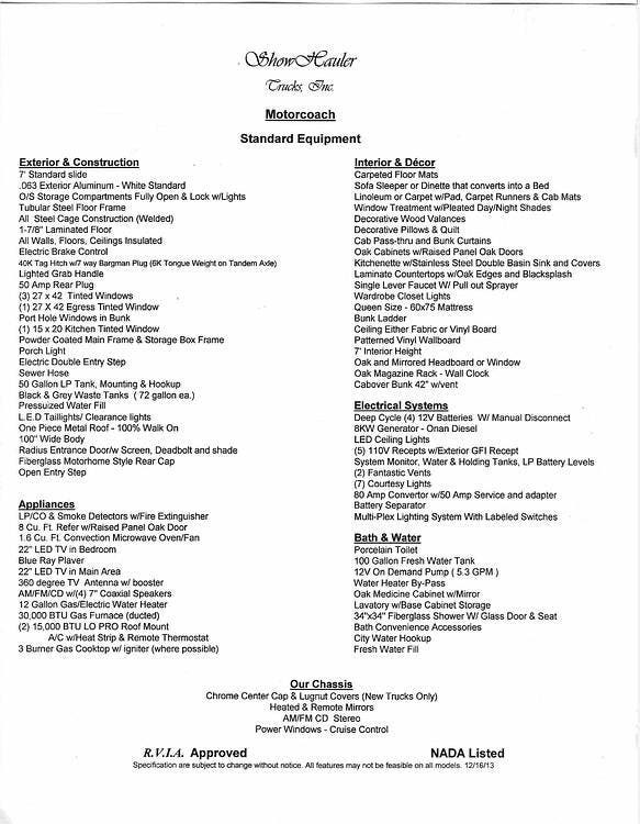 2016 Show Hauler Custom 33 (44' Overall) Literature