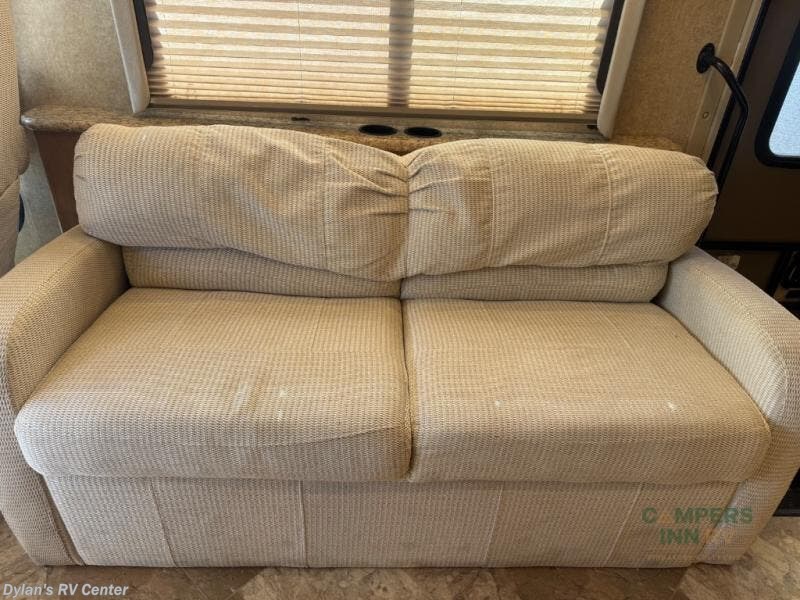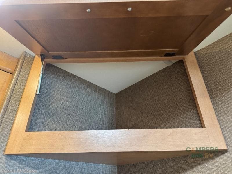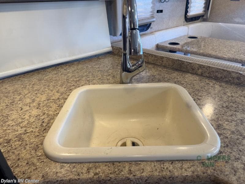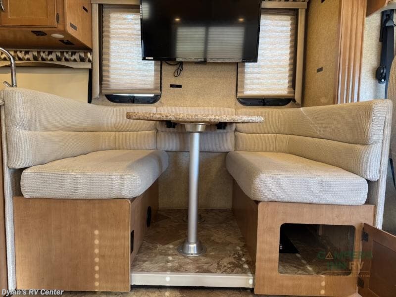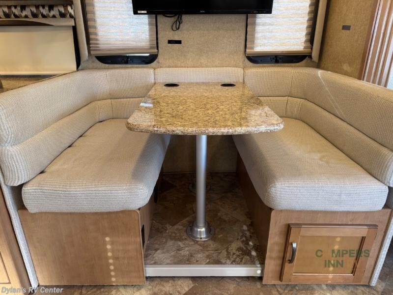 Step inside and find a jack-knife sofa to the right of the entrance. Across from the sofa is a booth dinette for mealtime and more. There is a 40" TV above the dinette that can easily be viewed from the sofa opposite. A convenient coffee table is between the driver and passenger seats.