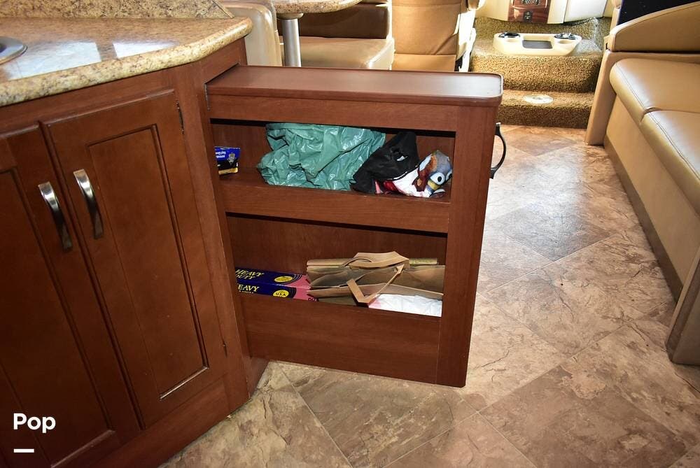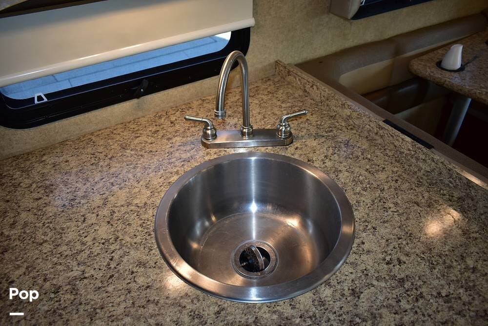 The galley makes meal prep a breeze. It features a pullout pantry, and a coffee table fits between the helm seats, adding to your dining pleasure.