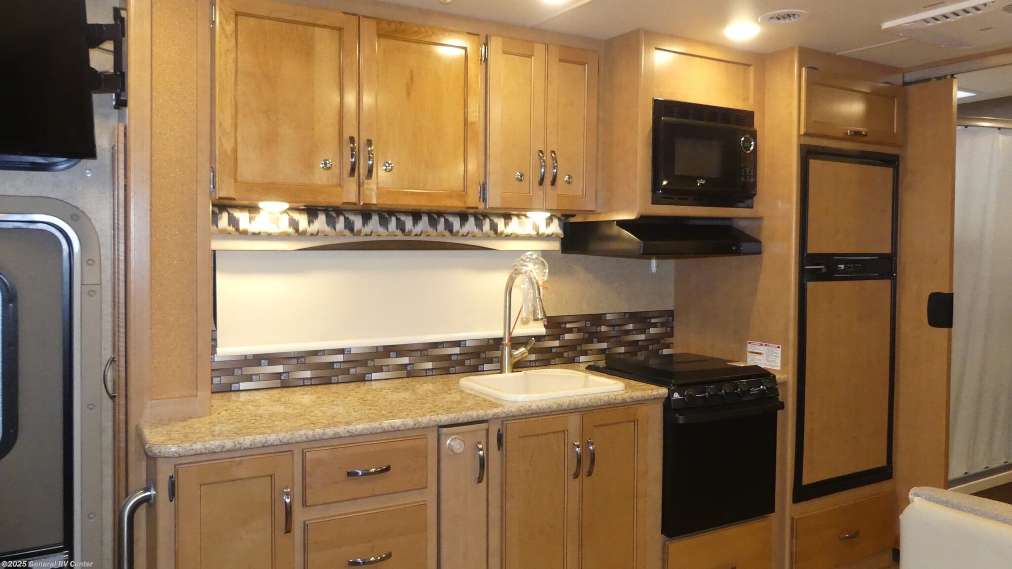 Step into the 2016 Thor Motor Coach A.C.E. 30.1, where adventure meets comfort in a beautifully crafted space. This motorhome offers a perfect blend of functionality and style, designed to accommodate up to eight sleepers comfortably. The interior layout features a front living area, ideal for relaxation with a jack-knife sofa and a cozy dinette that effortlessly converts into additional sleeping space. The center kitchen is equipped with a three-burner cooktop and a mid-size refrigerator, providing all the essentials for culinary creativity on the road. As you move towards the rear, you'll find a private bedroom with a queen-size bed, surrounded by ample closet space for all your travel essentials. The center bath, featuring a convenient shower curtain, ensures a refreshing experience after a long day of exploration. With a 14 ft. powered retractable awning, you can enjoy outdoor leisure in comfort, while the Ford F-Series Super Duty chassis and Triton V10 engine promise a smooth and powerful drive. Visit your nearest General RV dealership to explore this exceptional model and embark on your next journey in style.