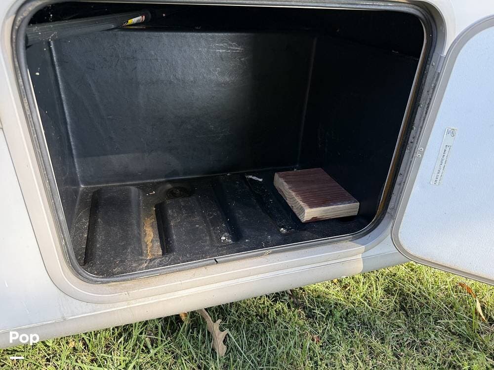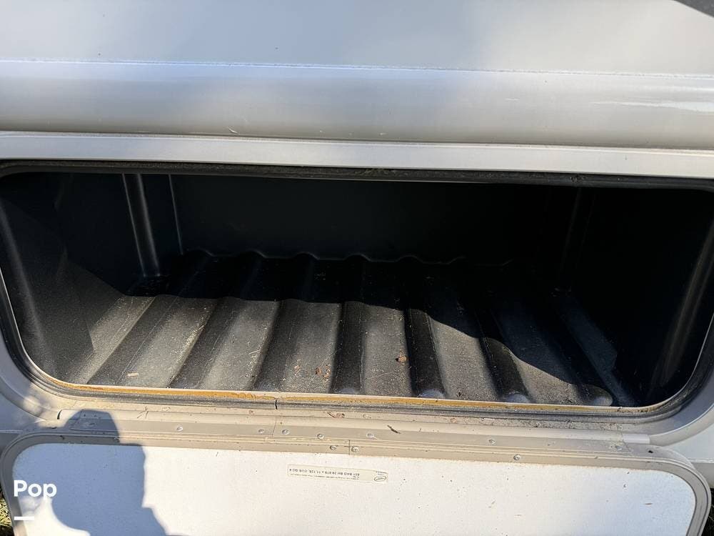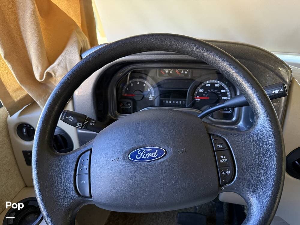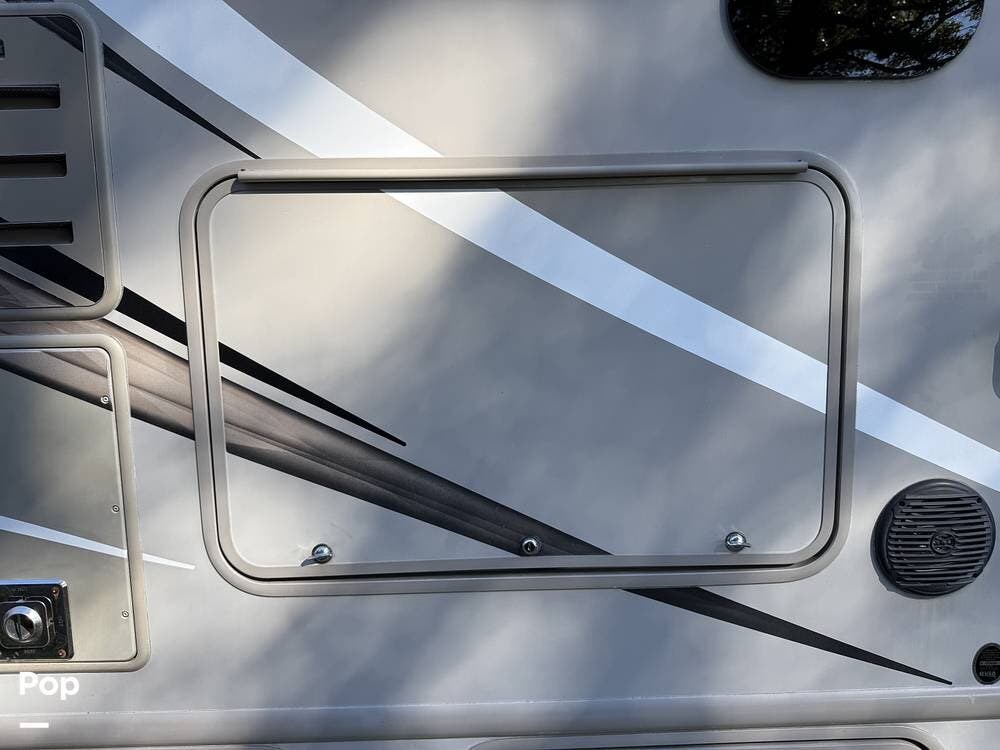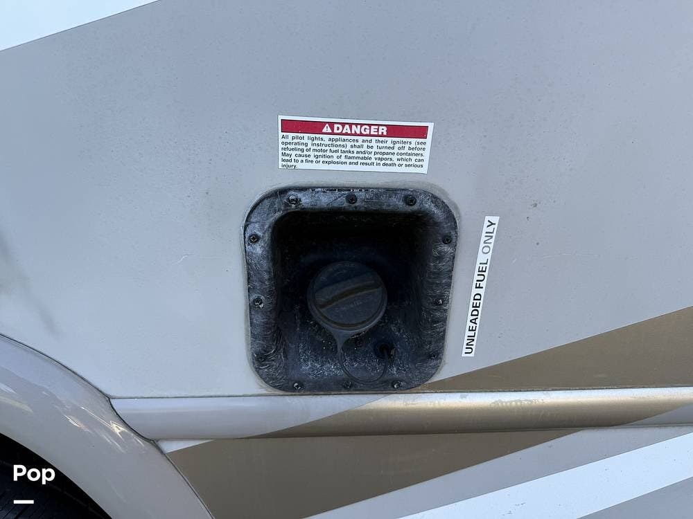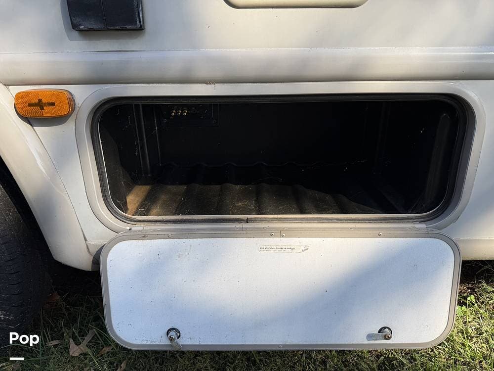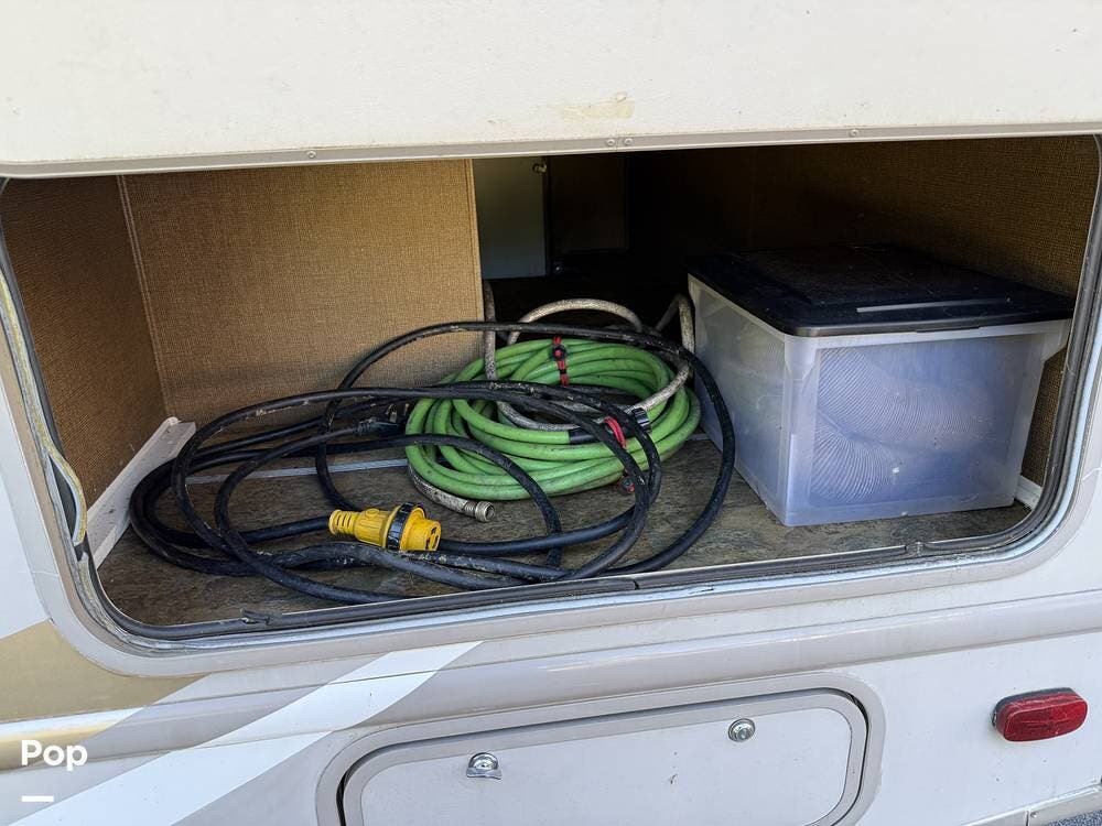 This unit is powered by the 6.8L Triton V10 engine and features a smooth automatic transmission that delivers confident power on the highway or in the mountains. The exterior includes a large powered patio awning, generous basement storage compartments, an exterior TV, and easy-to-access service points for convenience during setup and maintenance.