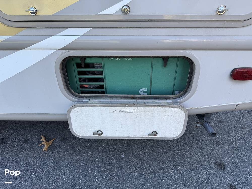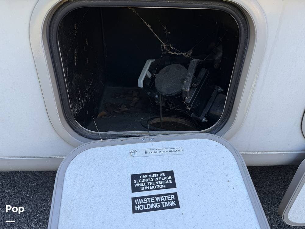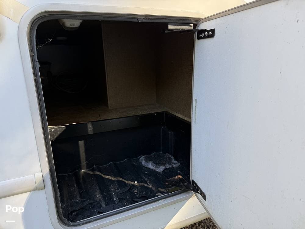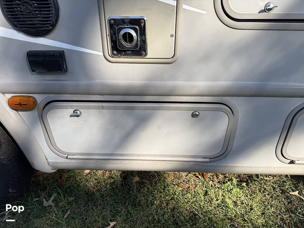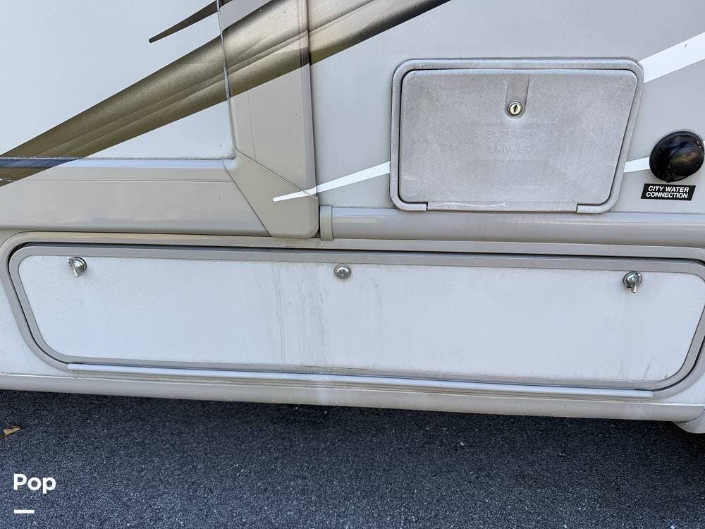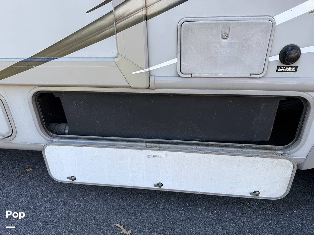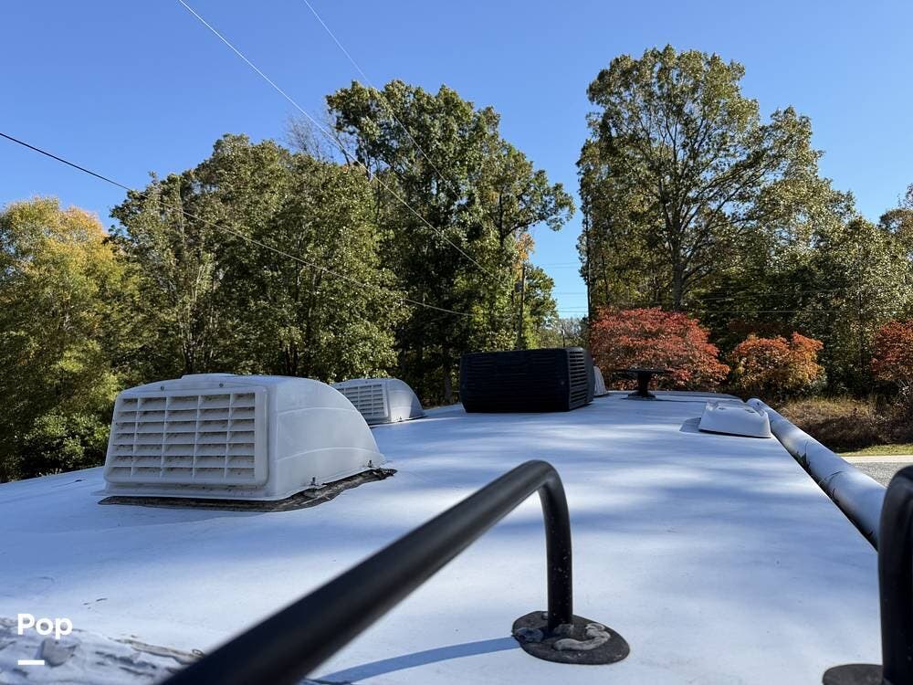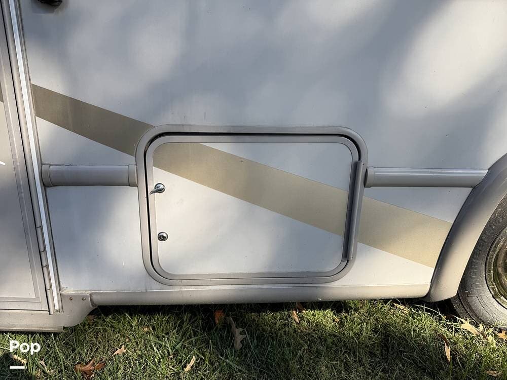 This unit is powered by the 6.8L Triton V10 engine and features a smooth automatic transmission that delivers confident power on the highway or in the mountains. The exterior includes a large powered patio awning, generous basement storage compartments, an exterior TV, and easy-to-access service points for convenience during setup and maintenance.