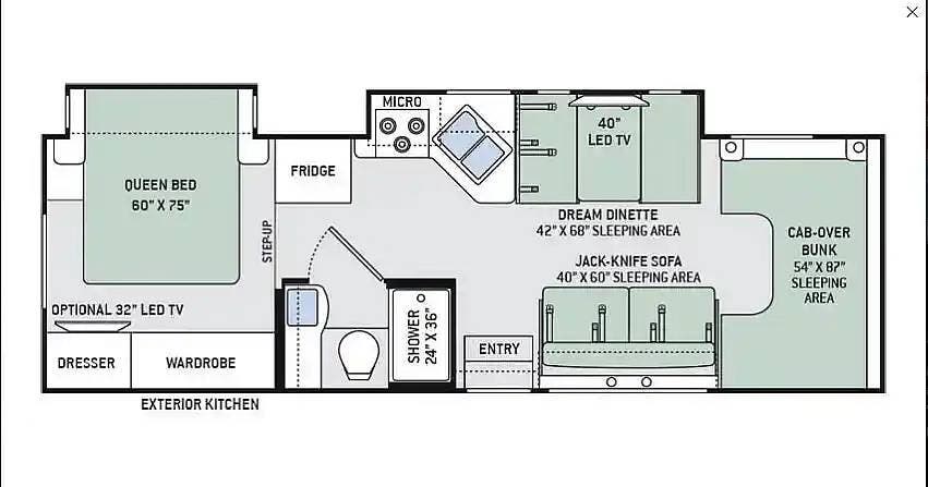 The Onan 4.0kW generator will ensure you have power wherever you go. Driving this Chateau RV is a breeze with the backup camera and the added right and left side cameras.