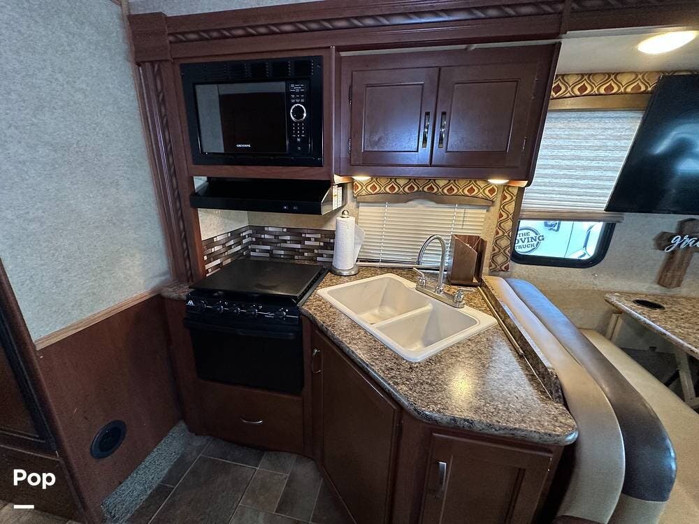 Its spacious living area features two slides with toppers, offering plenty of room for you and your family or friends to relax and enjoy your travels in comfort.