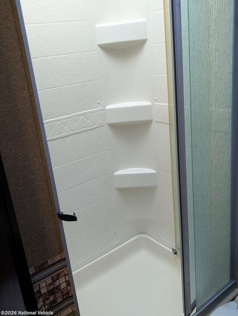 At just over 34 feet in length, the Chateau 33SW features three slide-outs that create a remarkably open living space. The private rear master suite includes a walk-around queen bed, generous wardrobe storage, and easy access to a full bathroom with a large shower. Above the cab, a roomy bunk adds extra sleeping capacity, making this coach ideal for families or guests.
