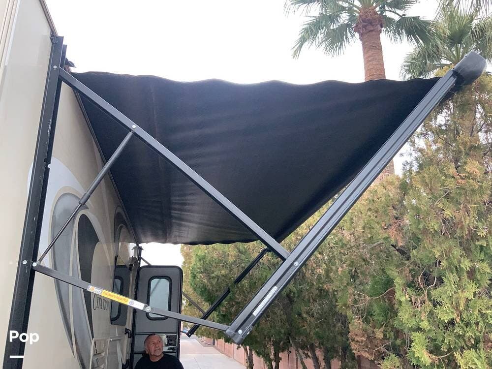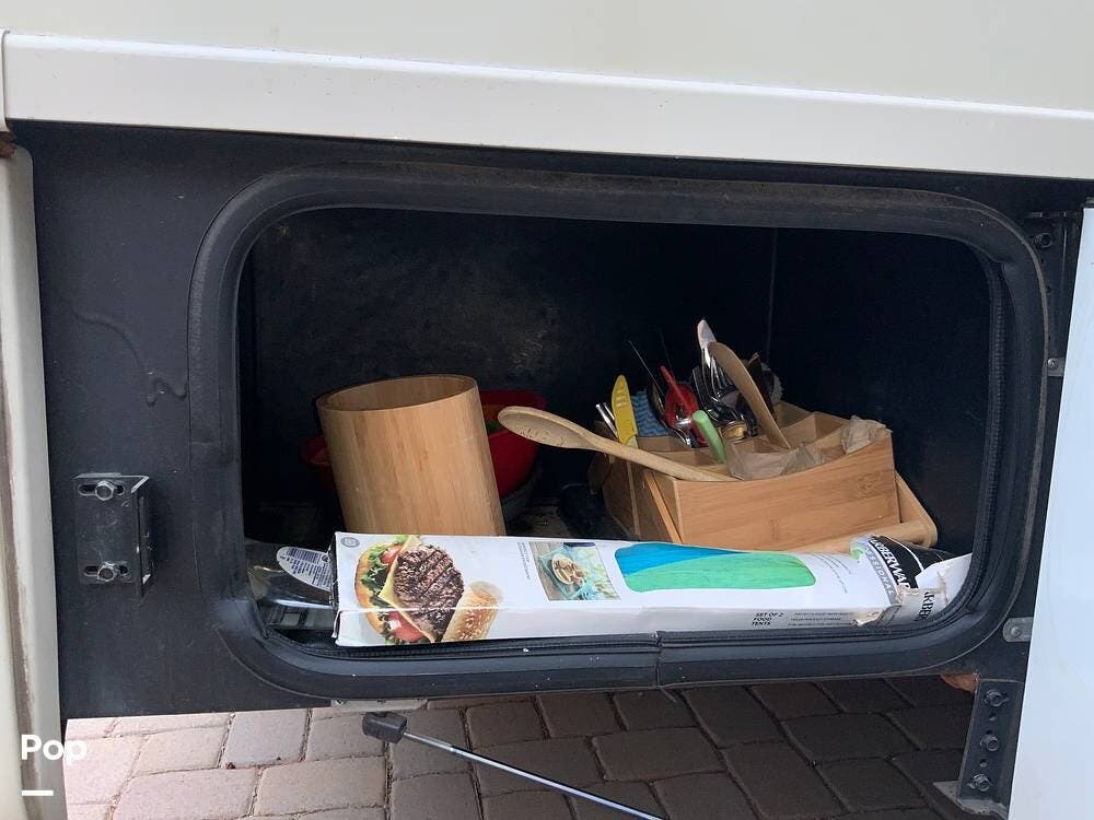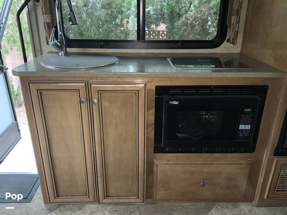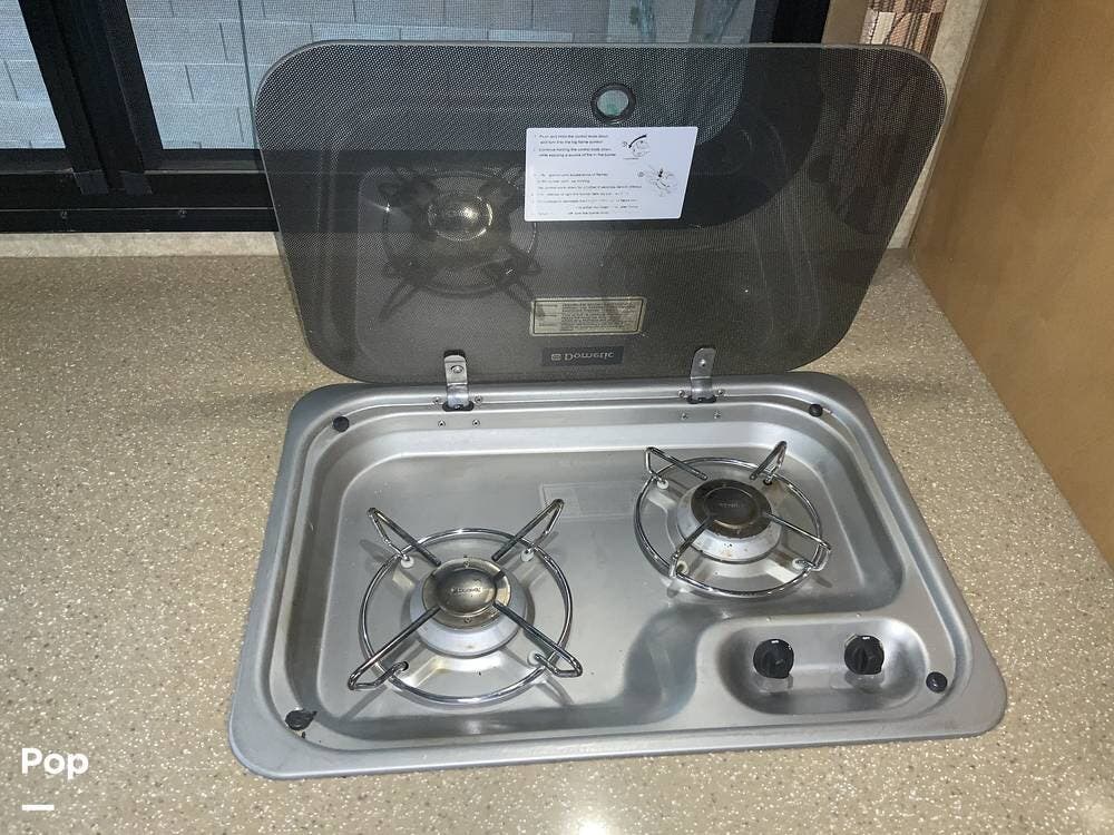 The unit has two slide-outs, providing ample interior space and comfortably sleeping up to five people.