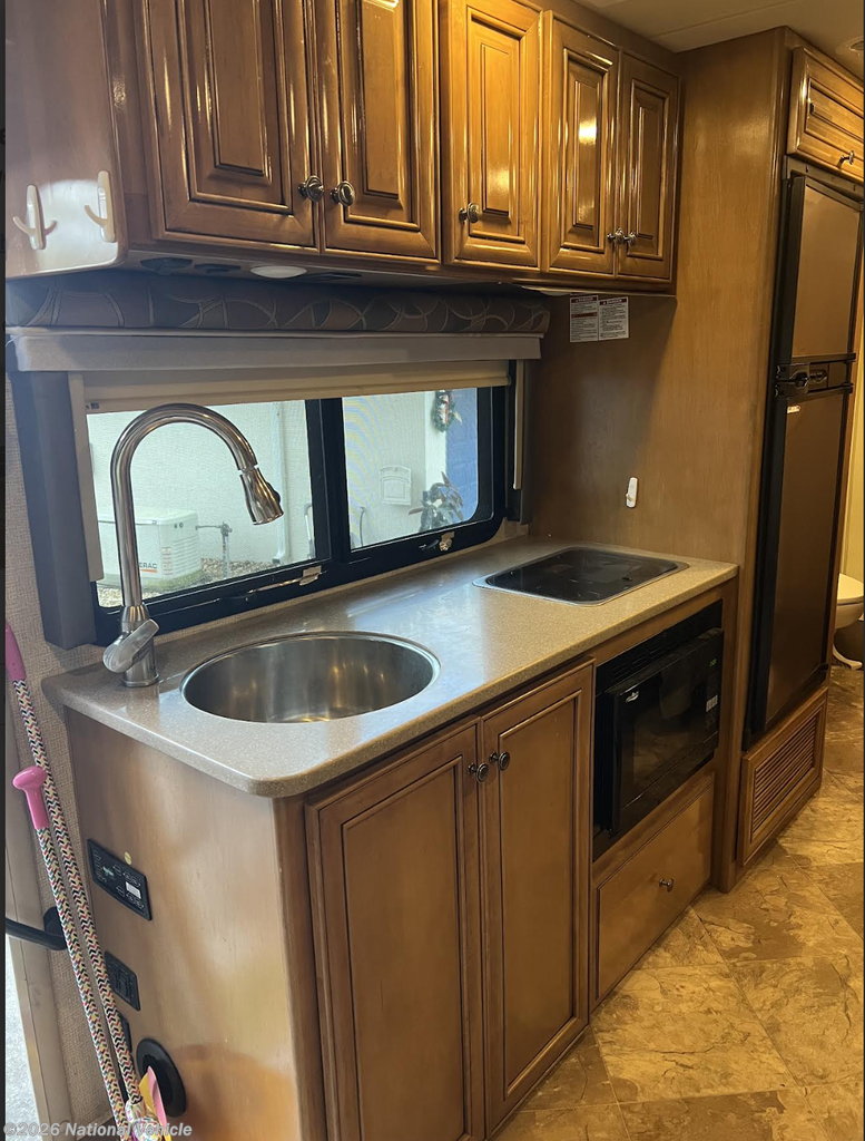 A fully equipped kitchen with solid-surface touches, premium appliances, and abundant cabinetry makes meal preparation a pleasure. The well-designed rear bath provides a generous shower, vanity, and ample storage?bringing residential comfort on the road.