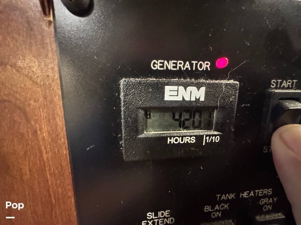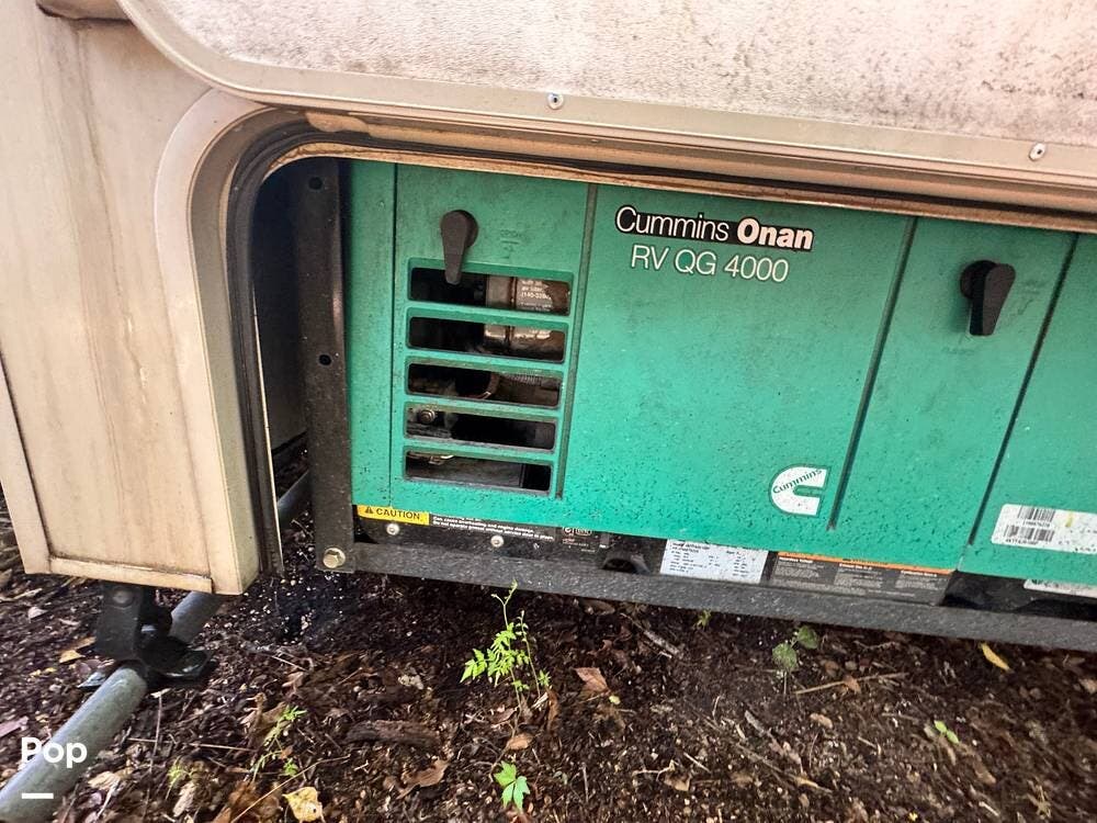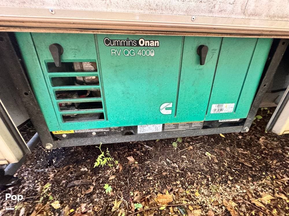 The exterior features dual slides, an XL patio awning, a 4.0kW generator, a pop-out television, manual levelers, 41 lbs. of propane, and roomy storage compartments.