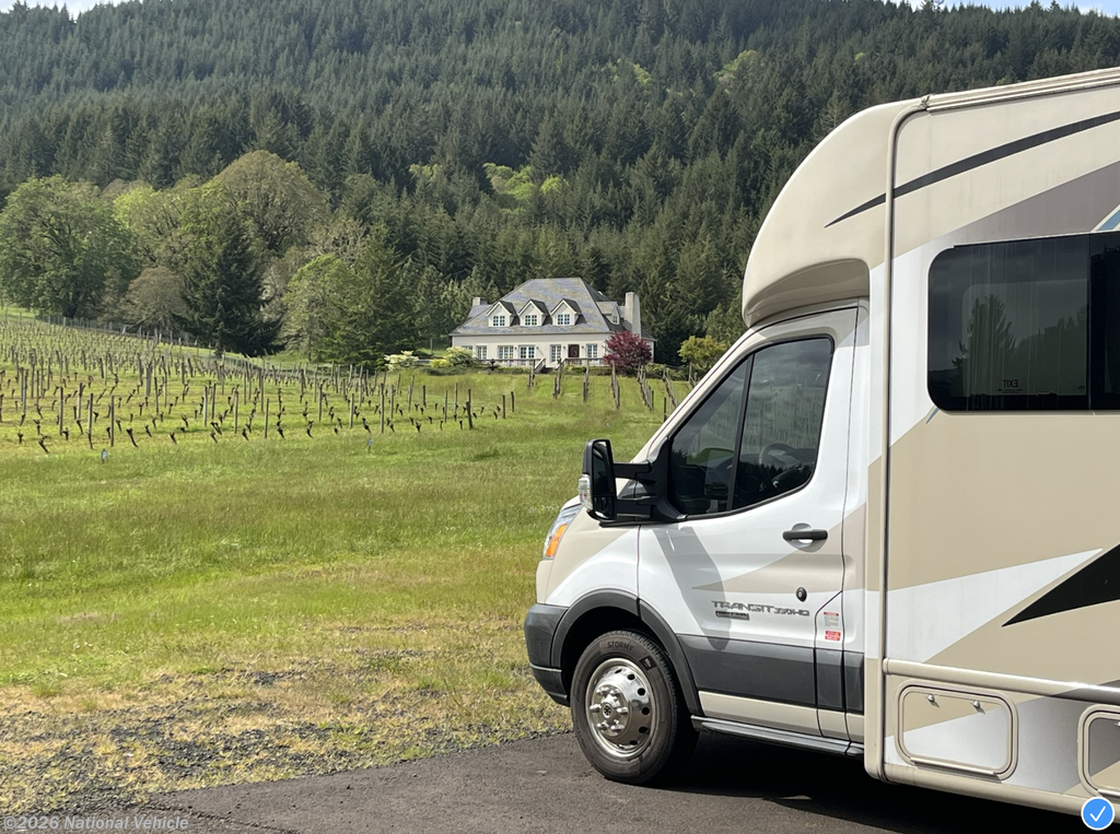 Compact Class C diesel motorhome built on a Ford Transit chassis, known for its maneuverability and efficiency, featuring a rear flip-up queen bed that converts to lounge seating, a jackknife sofa for extra sleeping, a compact kitchen with a convection microwave, and a full bath, designed for solo travelers or couples with its smart space-saving layout and amenities like HD-Max exteriors and tankless water heaters, though some owners reported initial issues with components like the water heater.