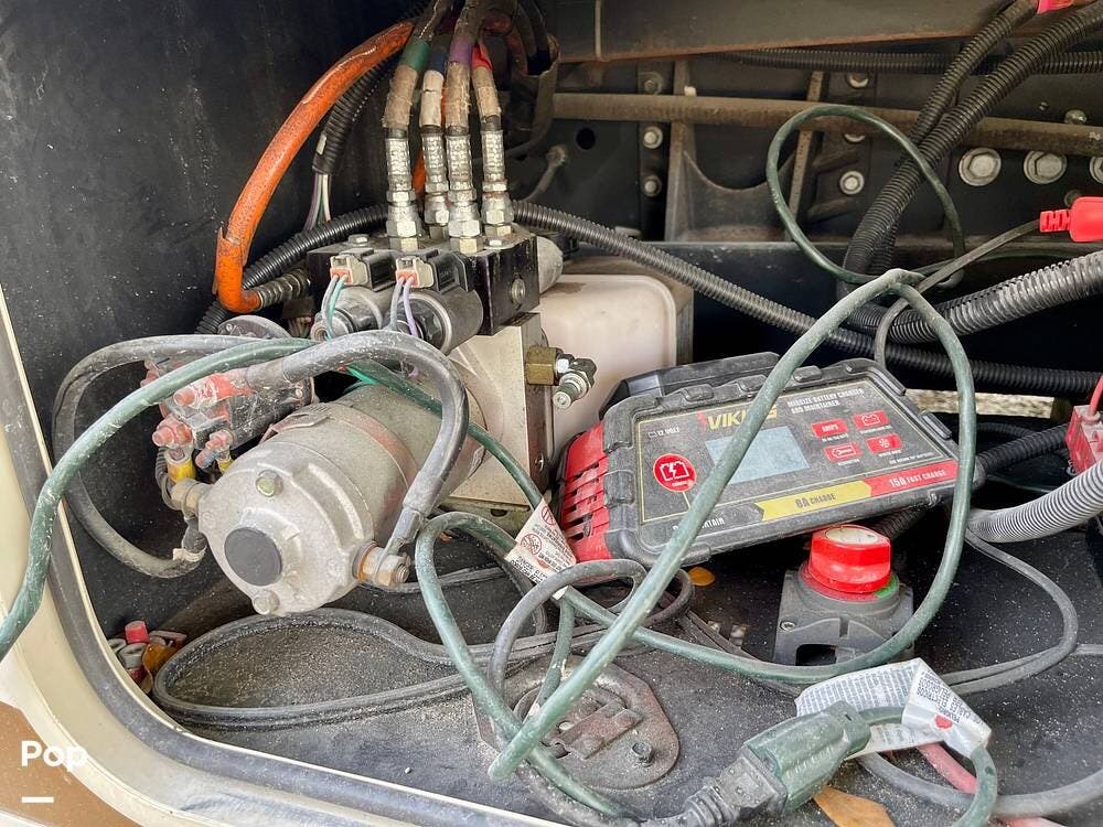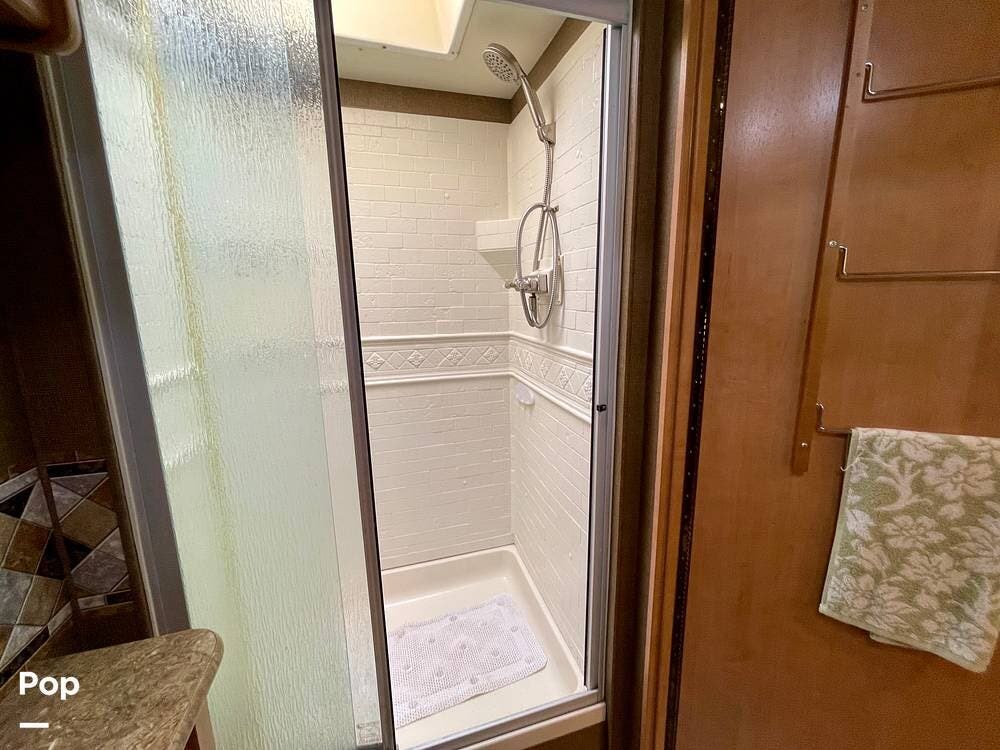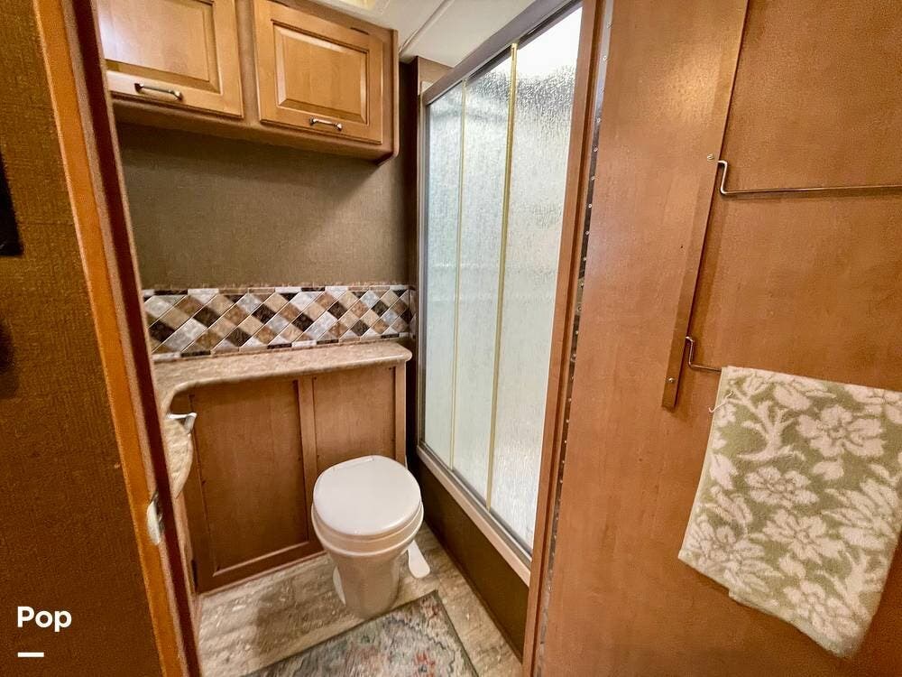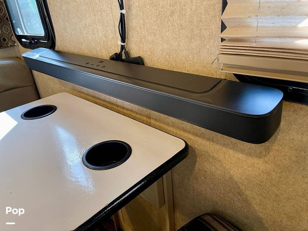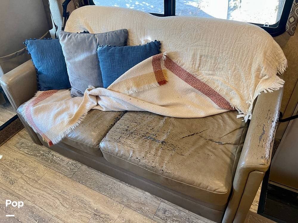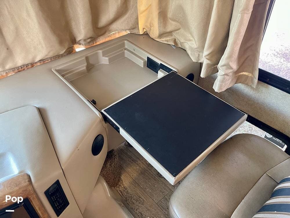 One of its standout features is the dual rear bunk beds, which provide a private, comfortable space, each equipped with its own TV for entertainment. The RV is built on a Ford F-53 chassis and powered by a Triton V10 engine, offering a smooth, reliable driving experience.
