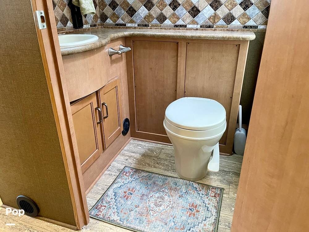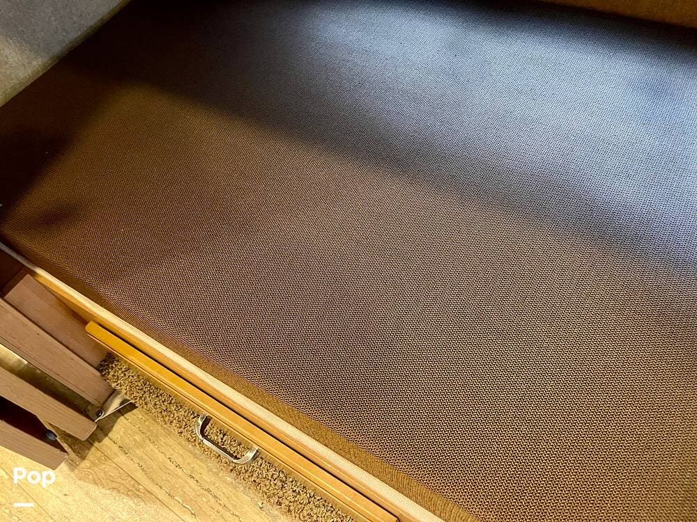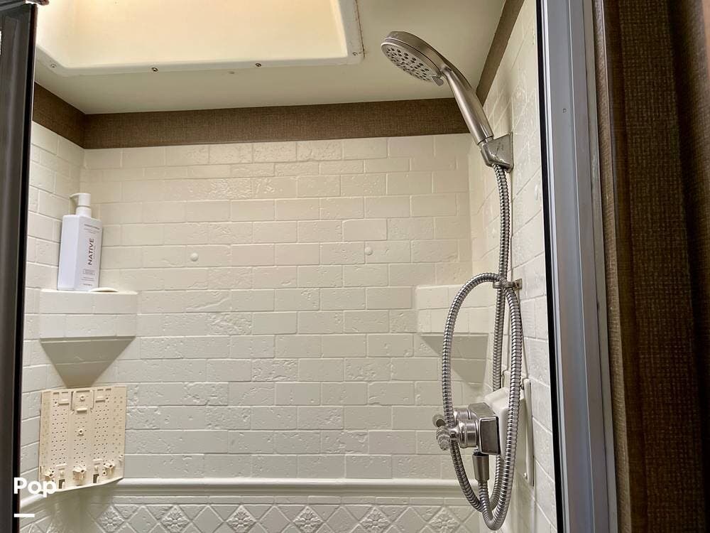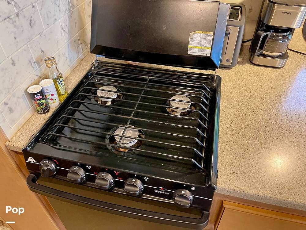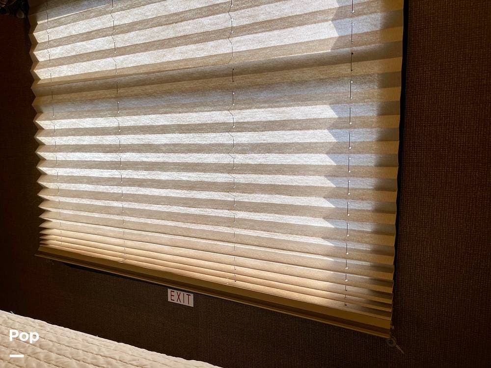 This Hurricane 34J is also known for its convertible living spaces. With retractable slide-outs, the RV expands to offer a spacious living and dining area, making it ideal for both relaxation and entertaining. The cabover bunk above the driver's seat easily folds down to provide additional sleeping space. At the same time, the dinette and sofa can also be converted into beds, ensuring that everyone has a place to sleep.