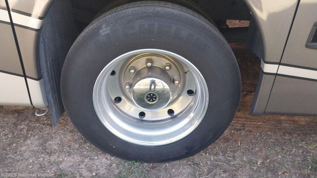 It is a 34-foot Class A motorhome on a Ford chassis with the V10 motor. About 22,500 miles on motor. Tires are like new, Michelin. We are the second owner and both owners have kept the motorhome under cover, tires as well. It has auto-leveling jack system, Onan generator, auto-start generator at low battery, power awning, retractable covers over the two slide-outs, color monitor for rear and side views, upholstery was redone by first owners with better material, electric steps, three TVs, DVD player, satellite antenna, digital antenna, Fan-tastic ventilation, Easy Park remote system, electric lowering front window shade, outdoor kitchen and TV, gas grill and a bed over the driver's area that electrically lowers to sleep two. I'm sure there is more. The body is painted in blacks, maroons, silver's and white.
