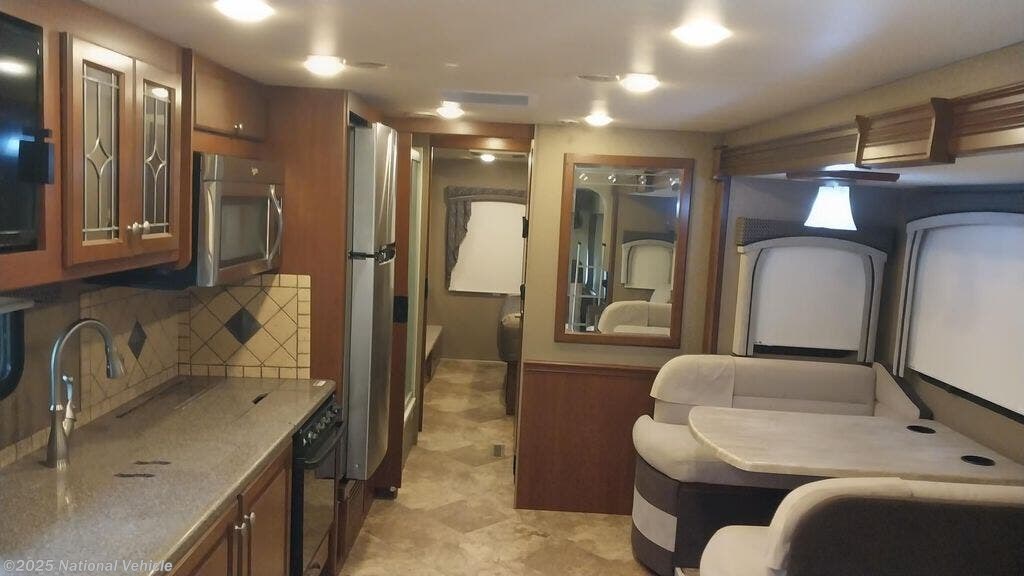 Travel in first-class comfort with the 2016 Thor Motor Coach Miramar 33.5, a 34' 7" Class A motorhome designed to deliver luxury living and effortless drivability. Built on the Ford F53 chassis and powered by a 6.8L Triton V10 gas engine, this coach offers impressive towing capacity, smooth performance, and the confidence to take on long-distance adventures with ease.