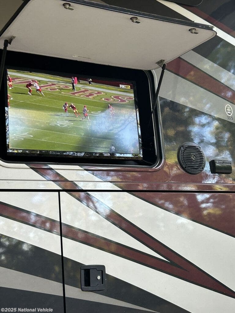 Entertainment is front and center with multiple HDTVs, a Bluetooth entertainment system, and an exterior TV under the power patio awning?perfect for outdoor movie nights.