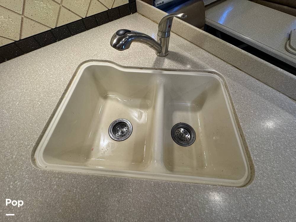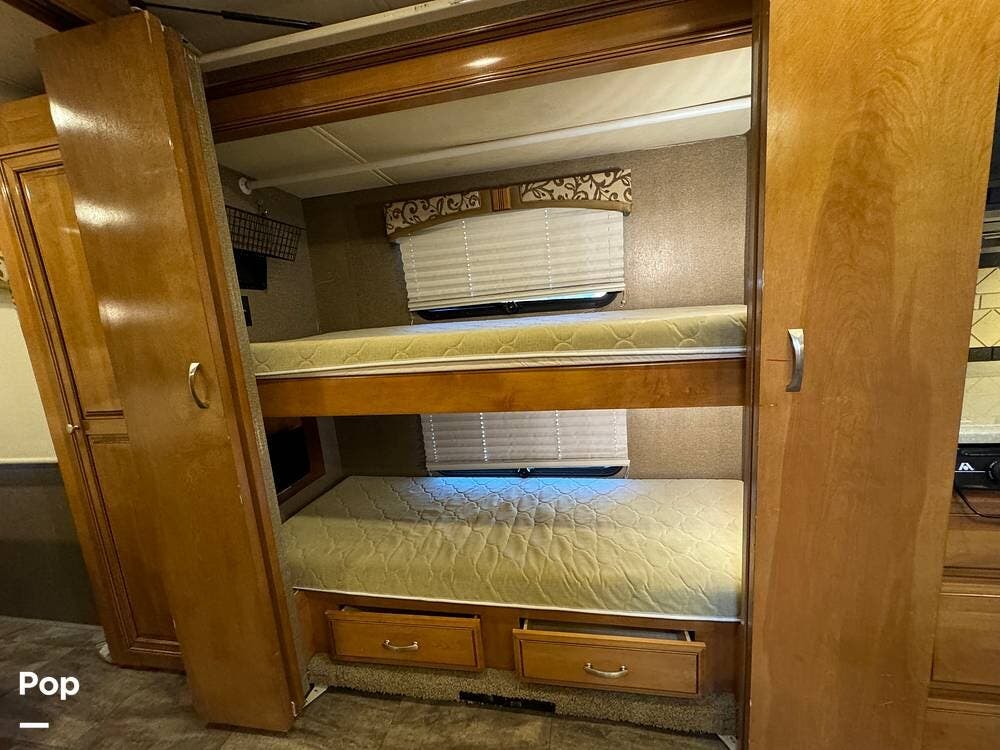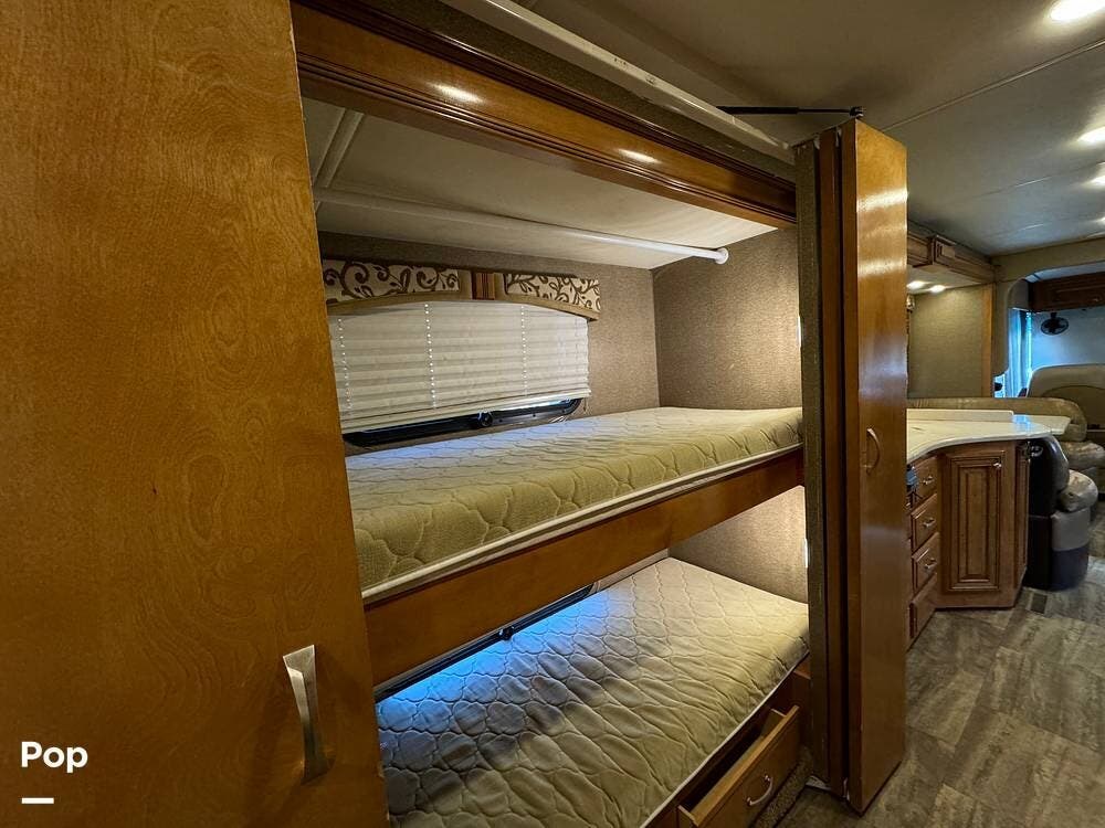 Inside, the spacious layout sleeps up to 10 with a queen-size bed in the master stateroom, bunk beds, a sleeper dinette, a sofa sleeper, and a convenient drop-down queen bed.