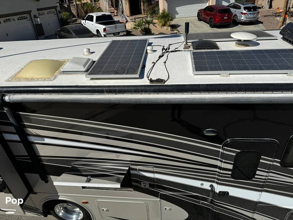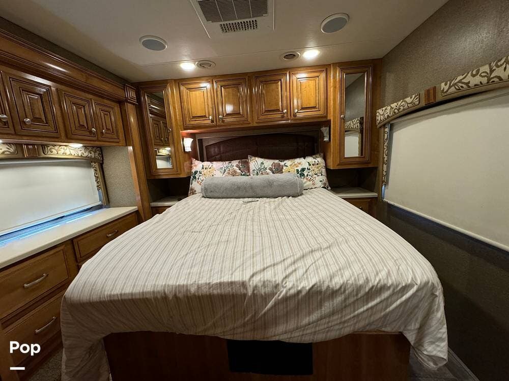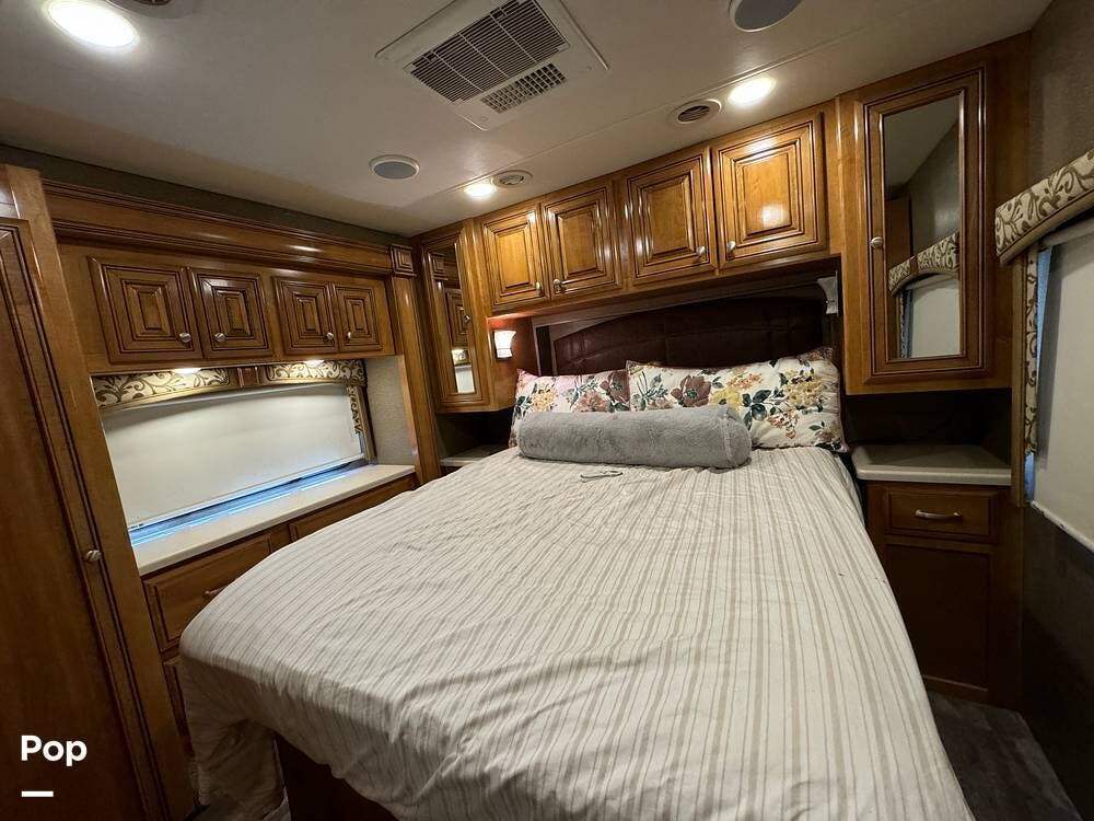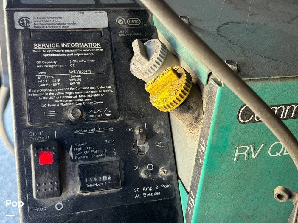 The RV has a Cummins Onan 6.0kW diesel generator, a 50-amp power cord, and dual 13,500 BTU air conditioners for your power needs.